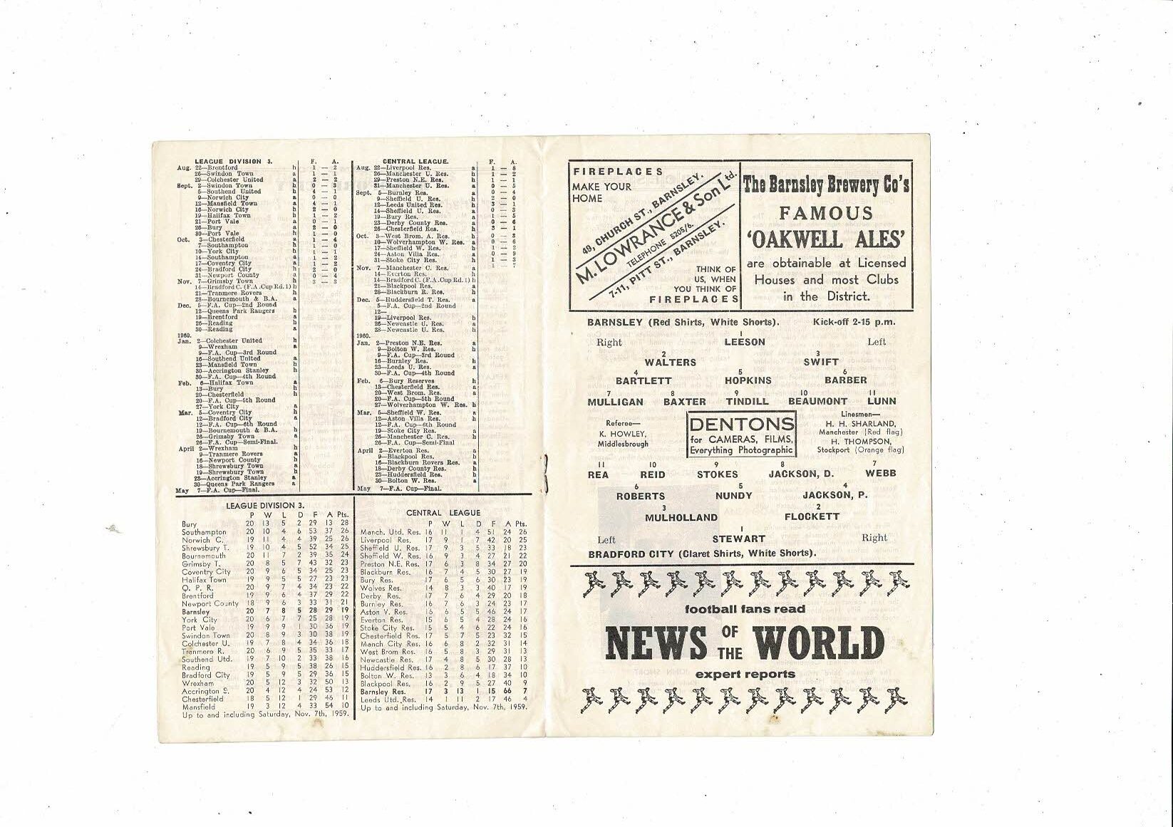 1959/60 Barnsley v Bradford City FA Cup Football Programme