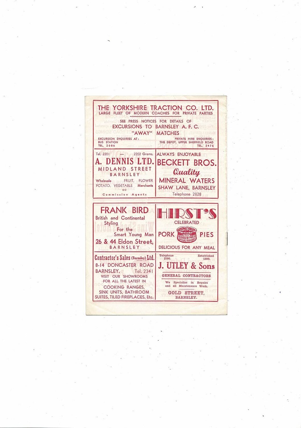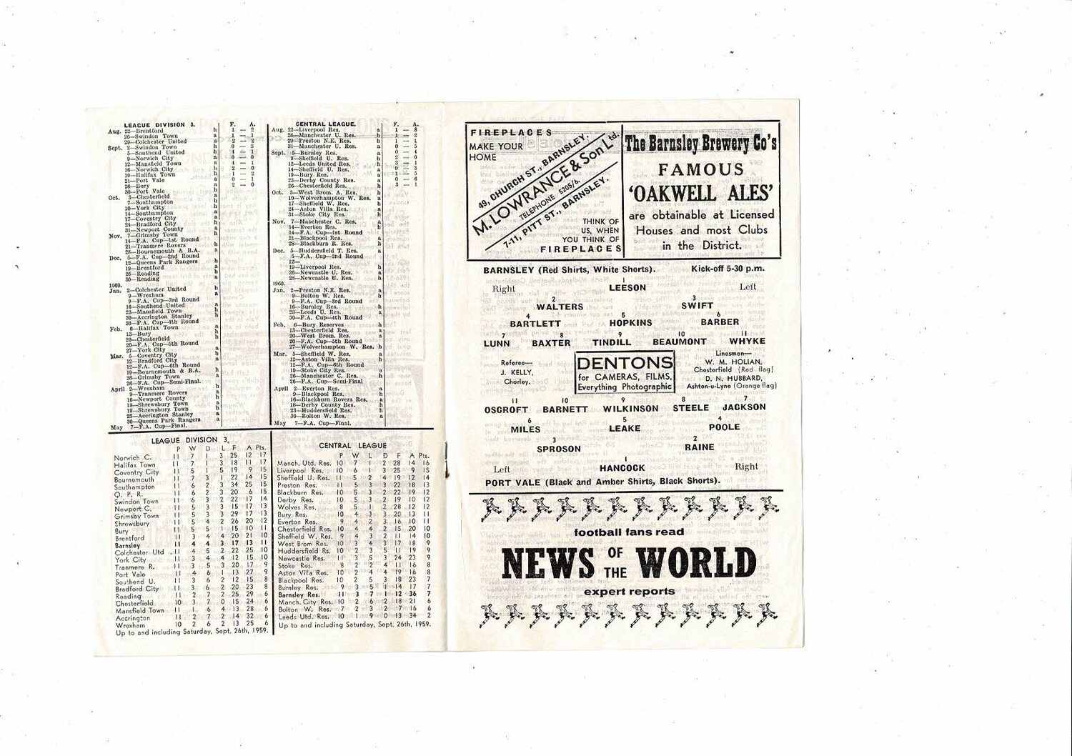 1959/60 Barnsley v Port Vale Football Programme