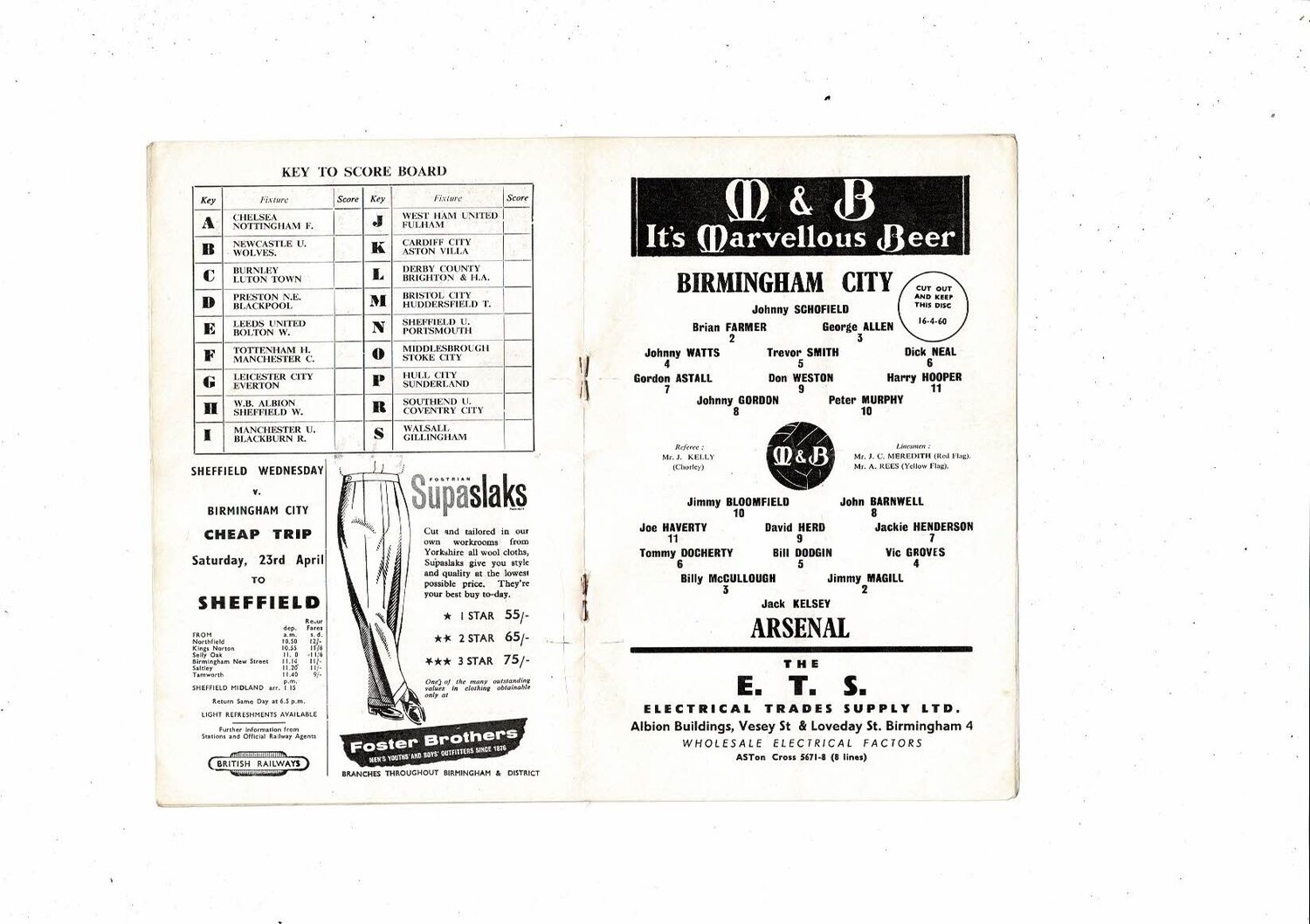 1959/60 Birmingham City v Arsenal Football Programme