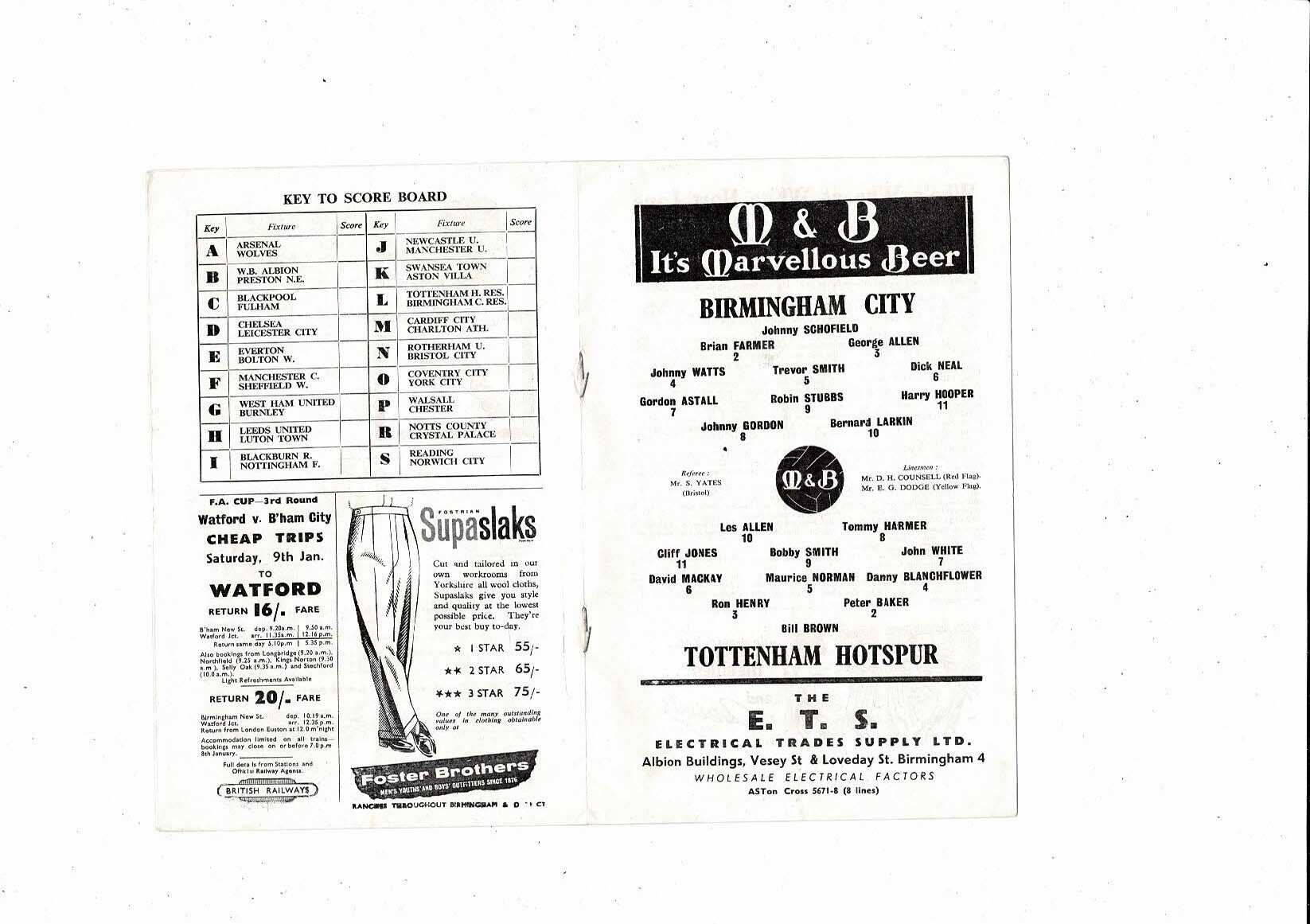 1959/60 Birmingham City v Tottenham Hotspur Football Programme