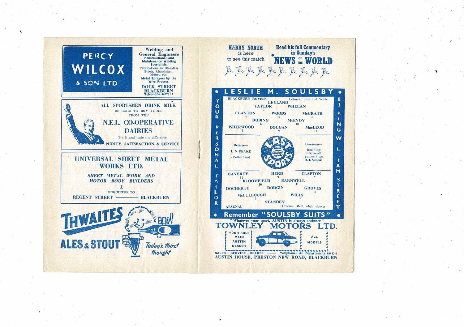 1959/60 Blackburn Rovers v Arsenal Football Programme