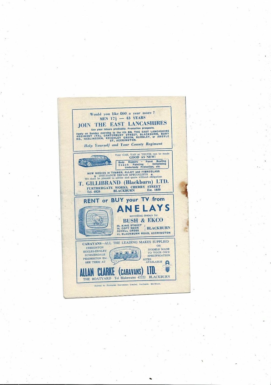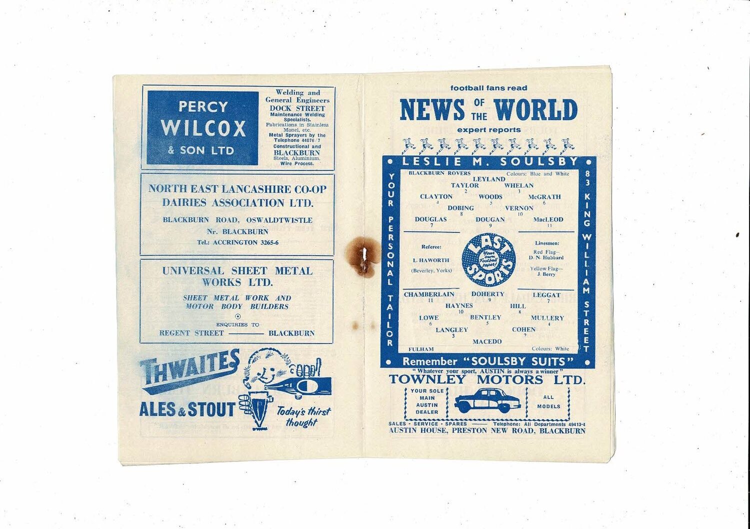 This is Original programme is creased with some staining & hole where rusty staple removed. no handwriting