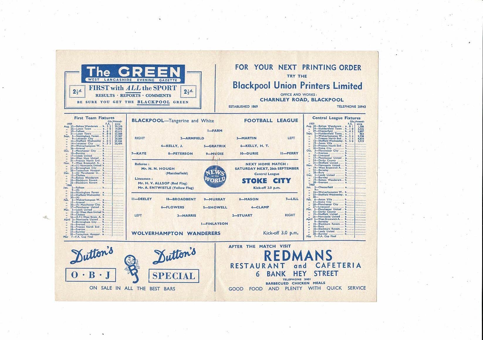 1959/60 Blackpool v Wolverhampton Wanderers Football Programme