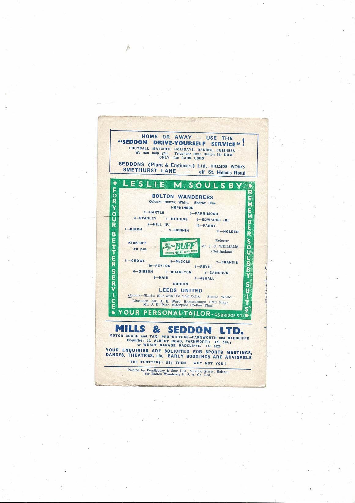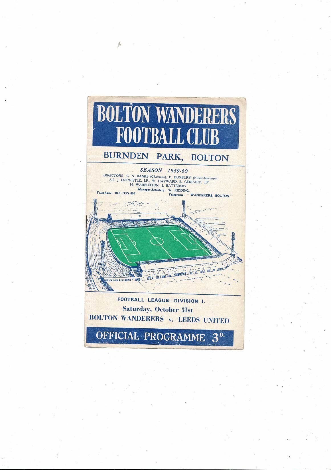 1959/60 Bolton Wanderers v Leeds United Football Programme