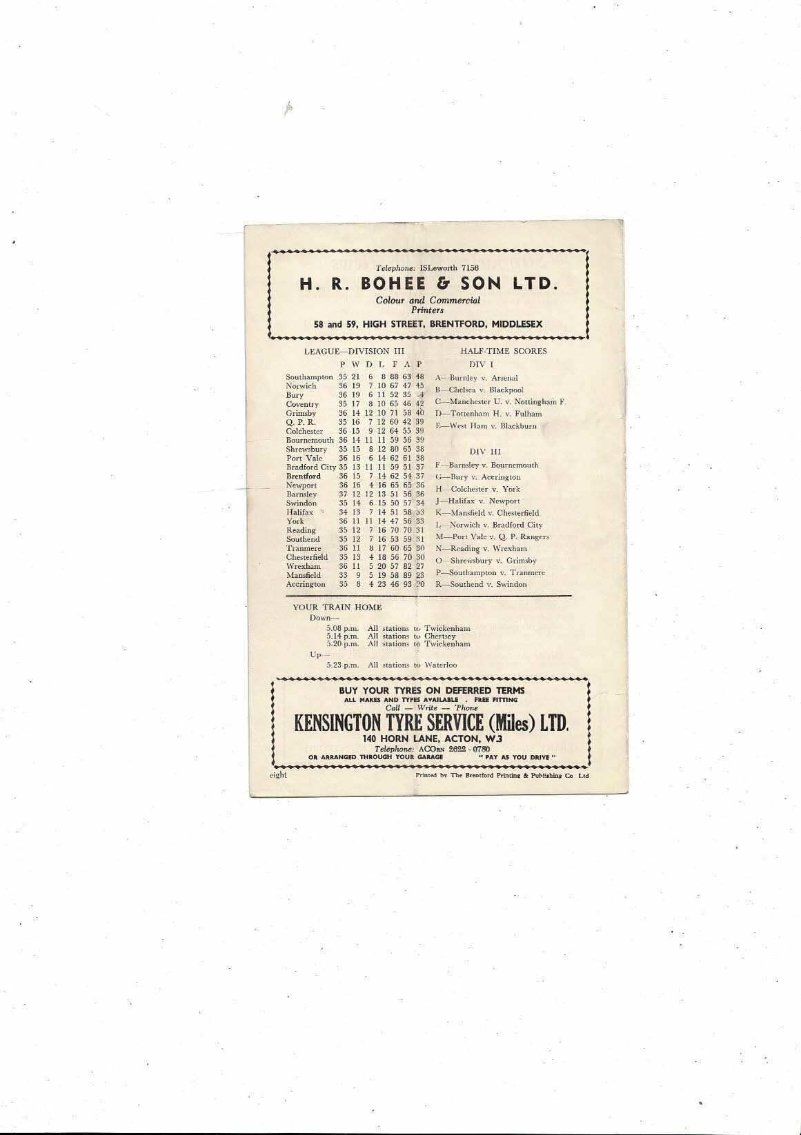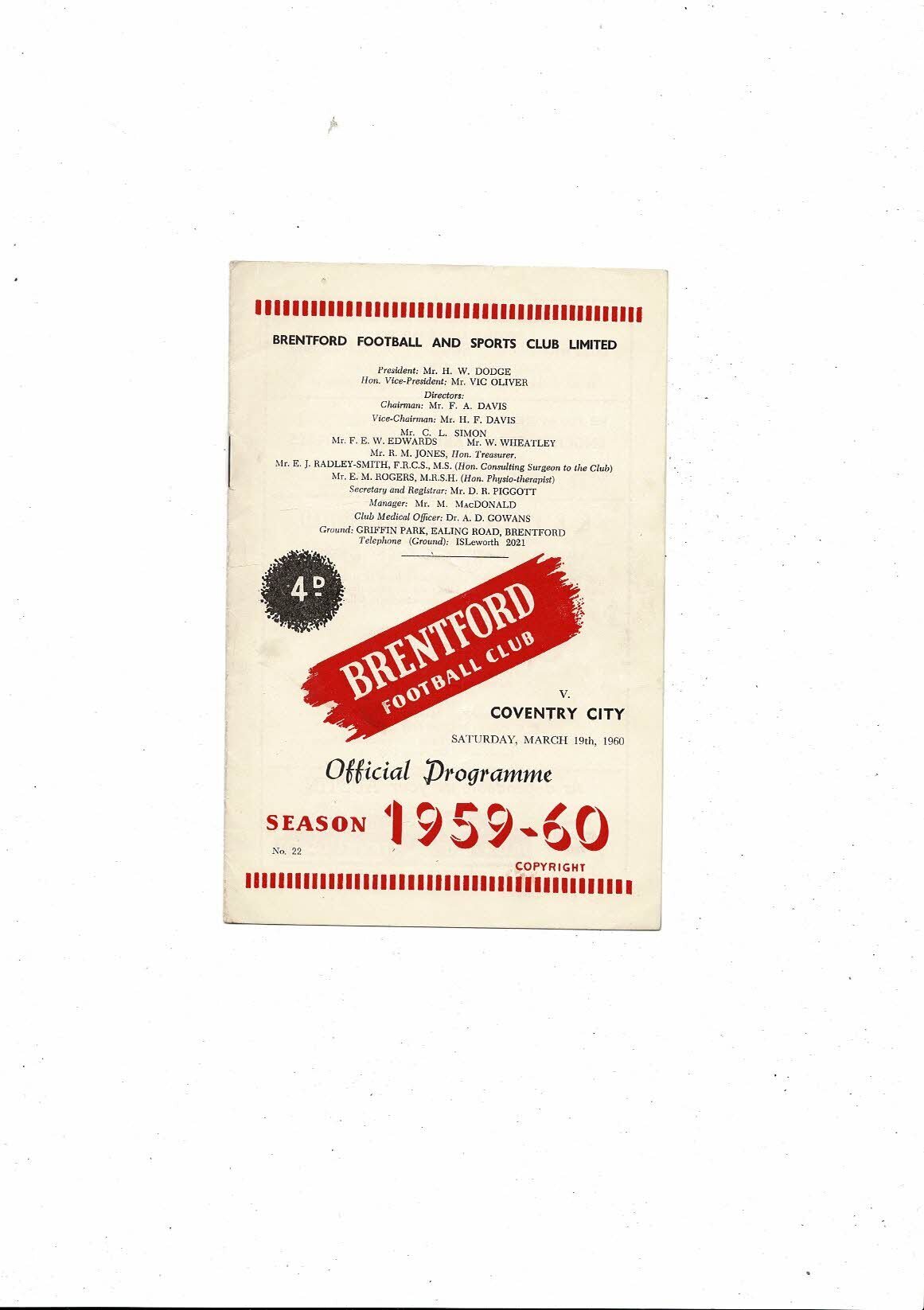 1959/60 Brentford v Coventry City Football Programme