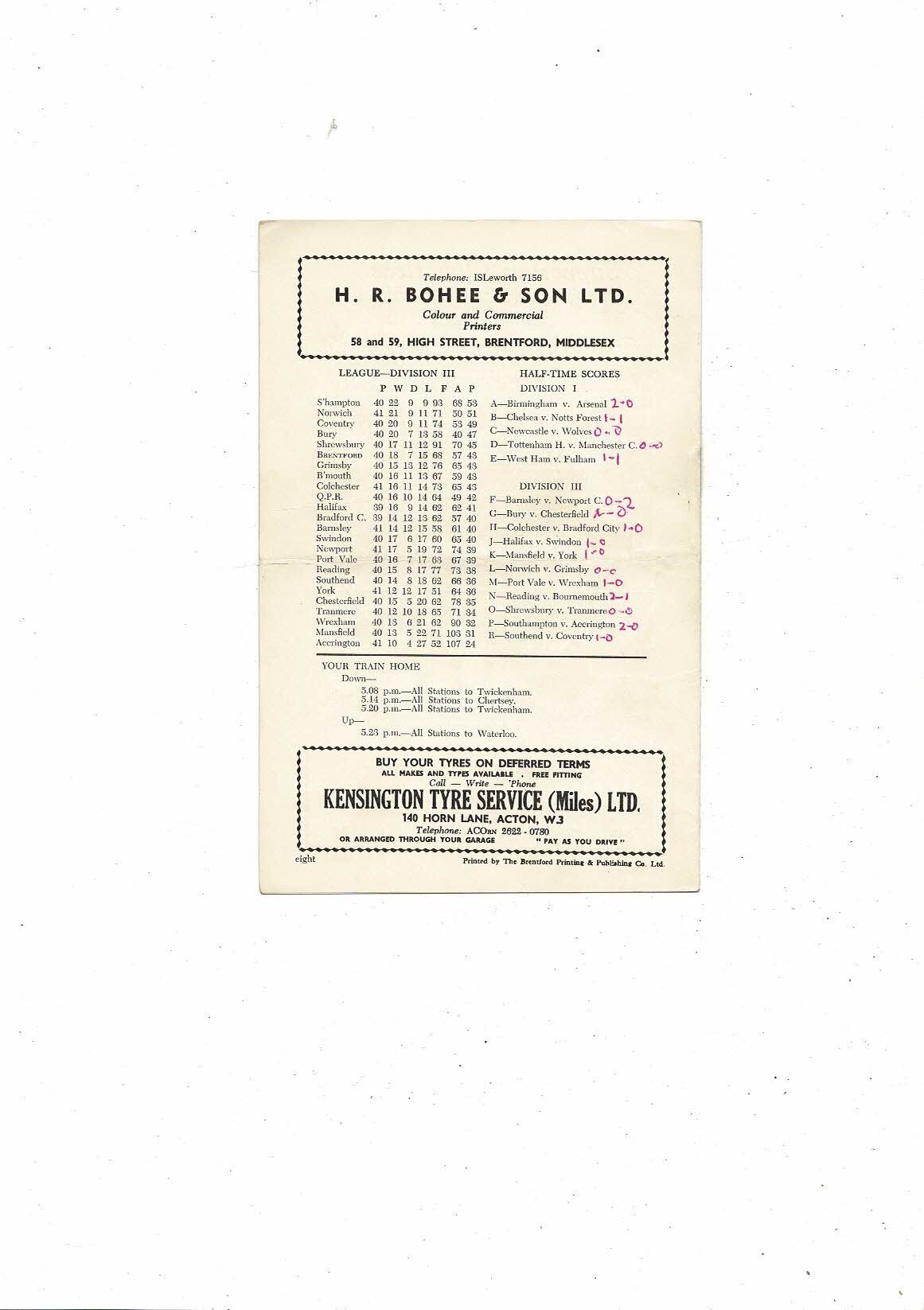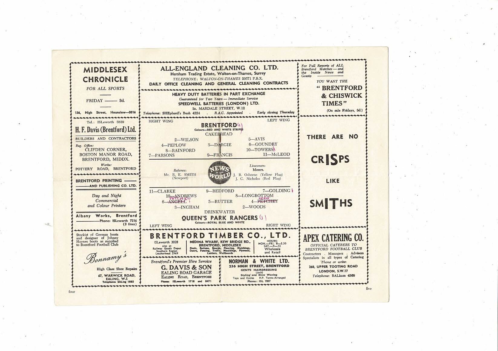 1959/60 Brentford v Queens Park Rangers Football Programme