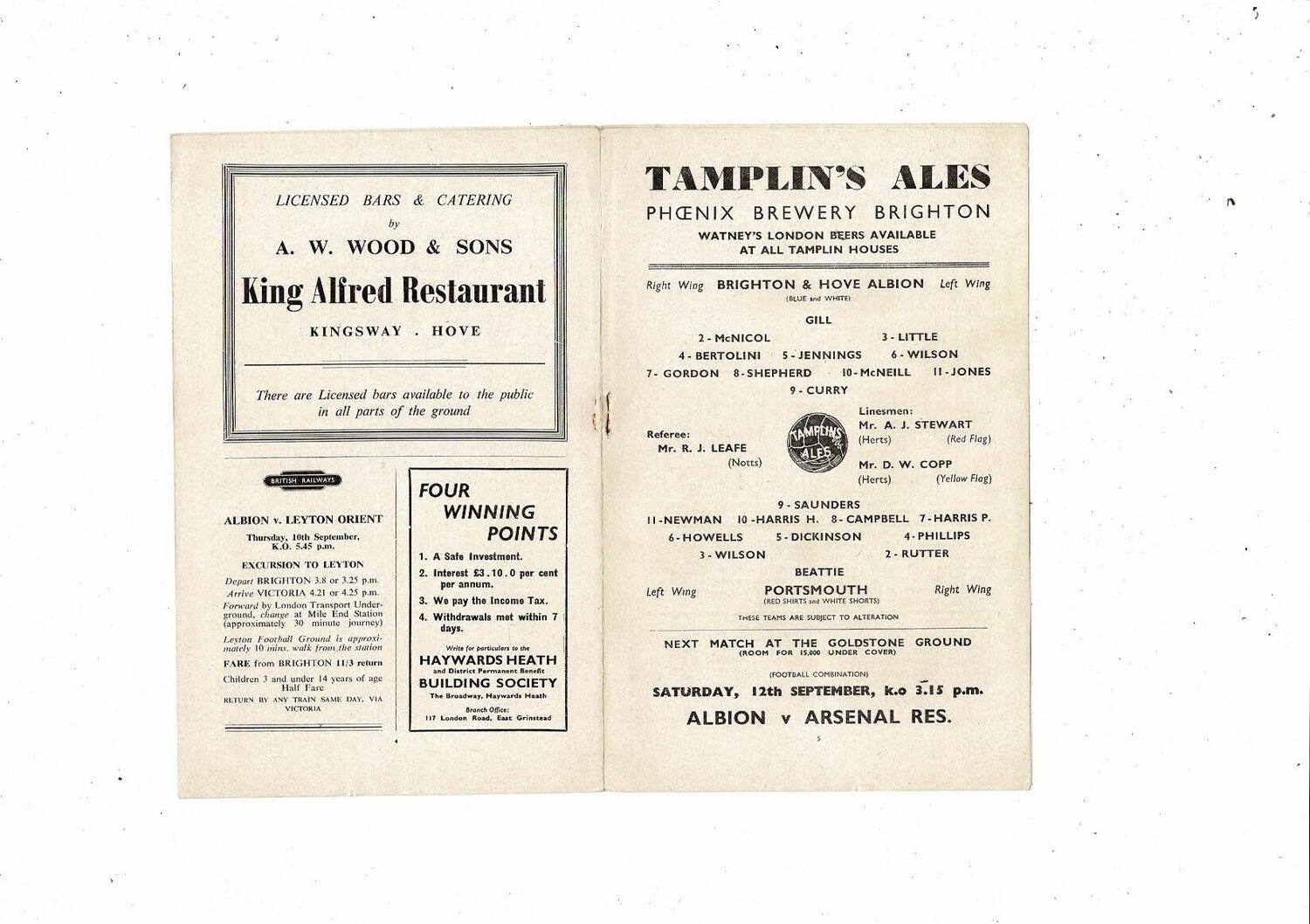 1959/60 Brighton v Portsmouth Football Programme