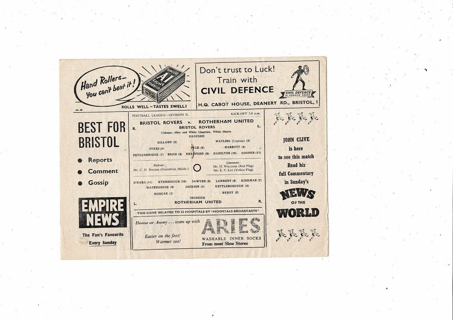1959/60 Bristol Rovers v Rotherham United Football Programme