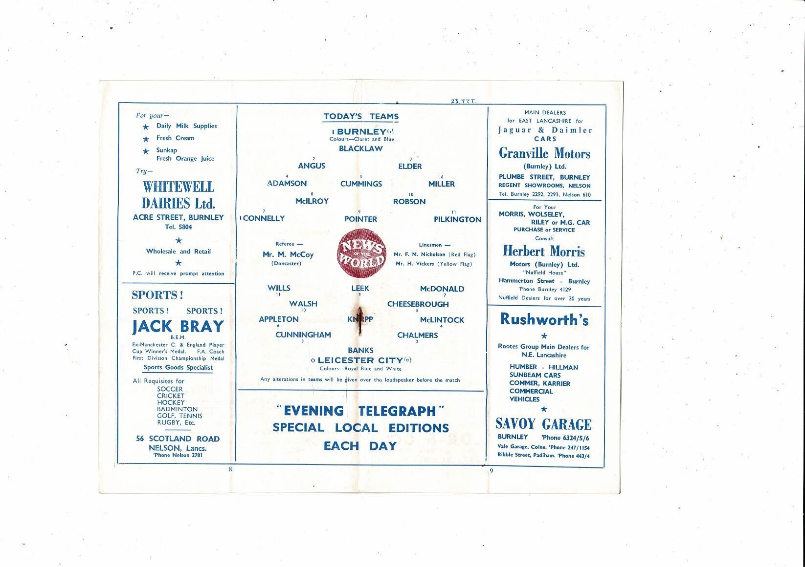1959/60 Burnley v Leicester City Football Programme Burnley Championship Season