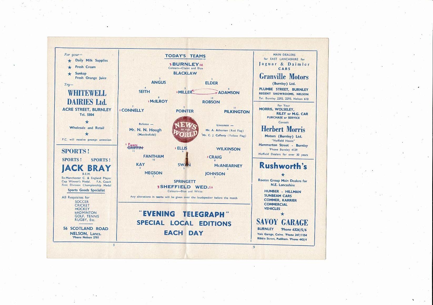 1959/60 Burnley v Sheffield Wednesday Football Programme