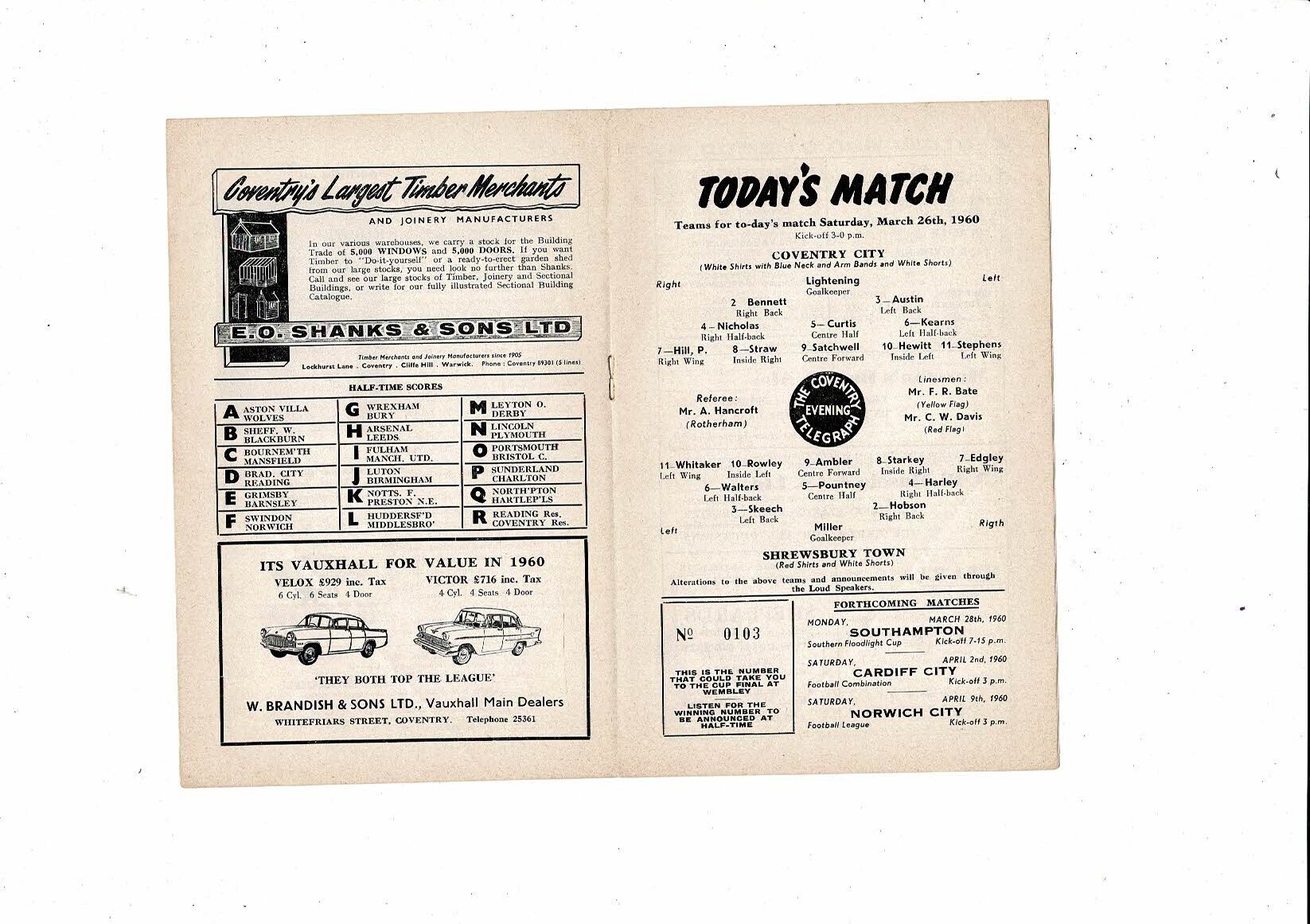 1959/60 Coventry City v Shrewsbury Town Football Programme