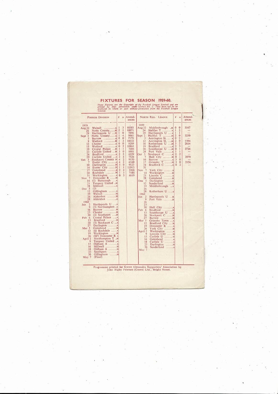 1959/60 Crewe Alexandra v Doncaster Rovers Football Programme