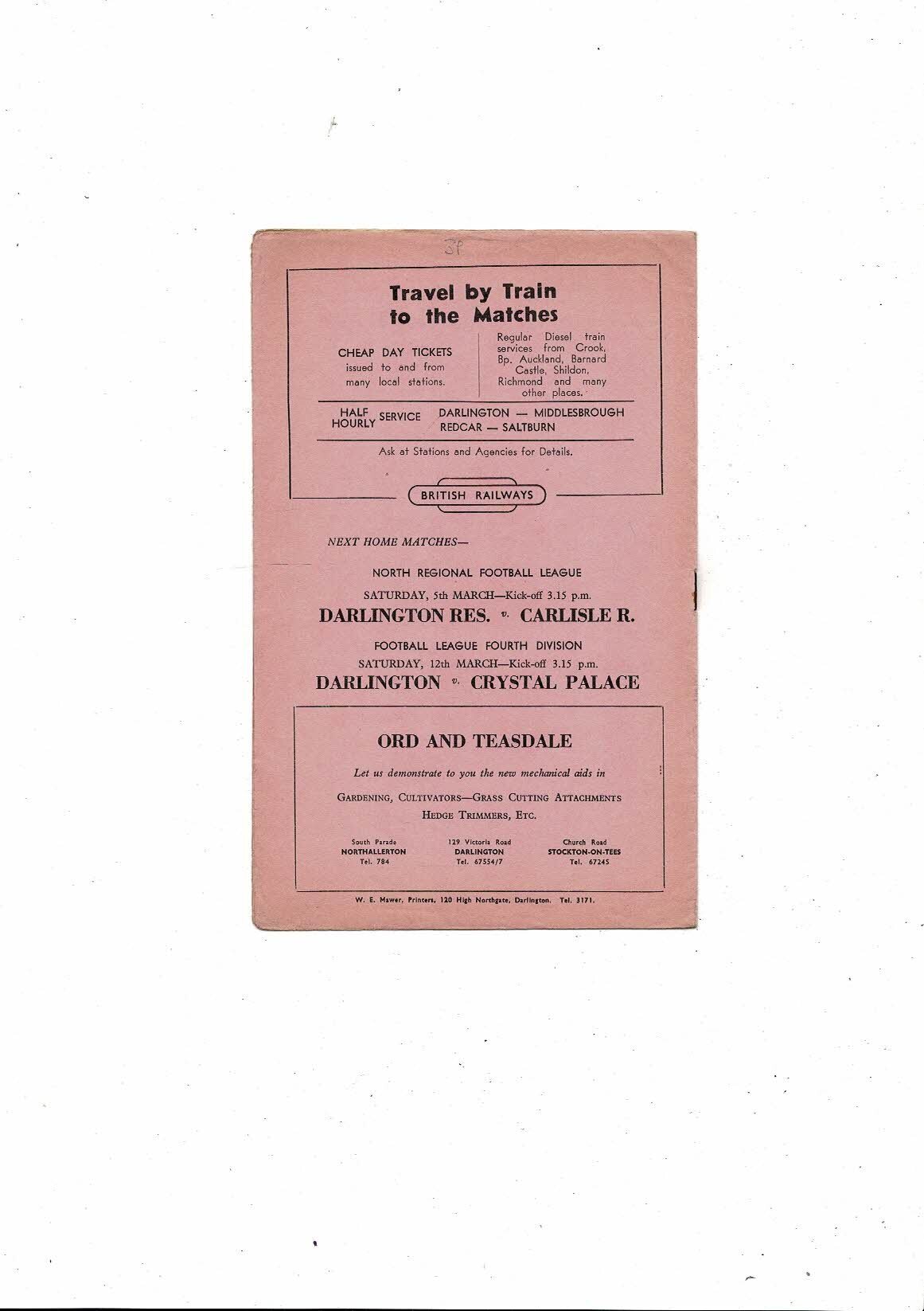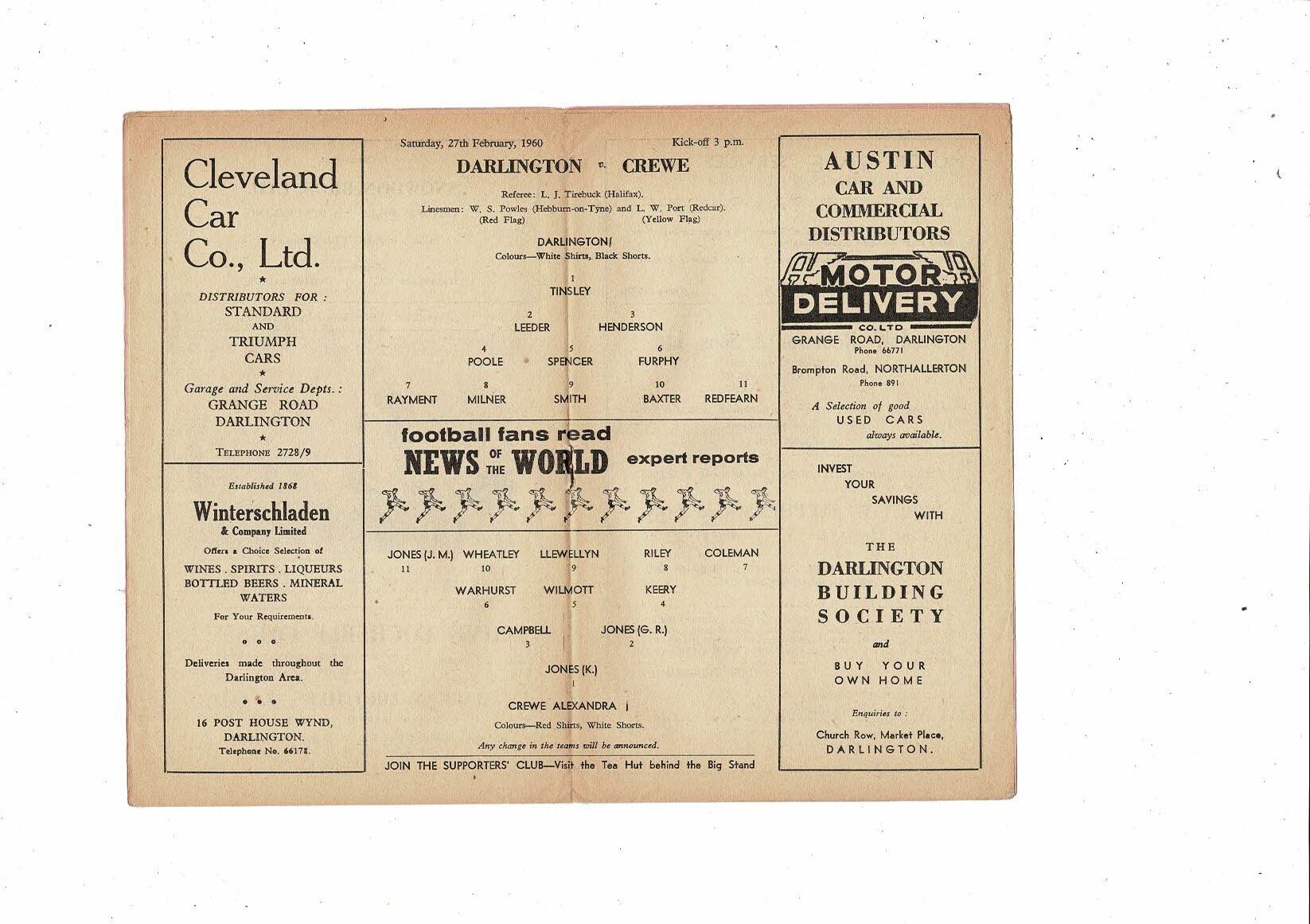 1959/60 Darlington v Crewe Alexandra Football Programme