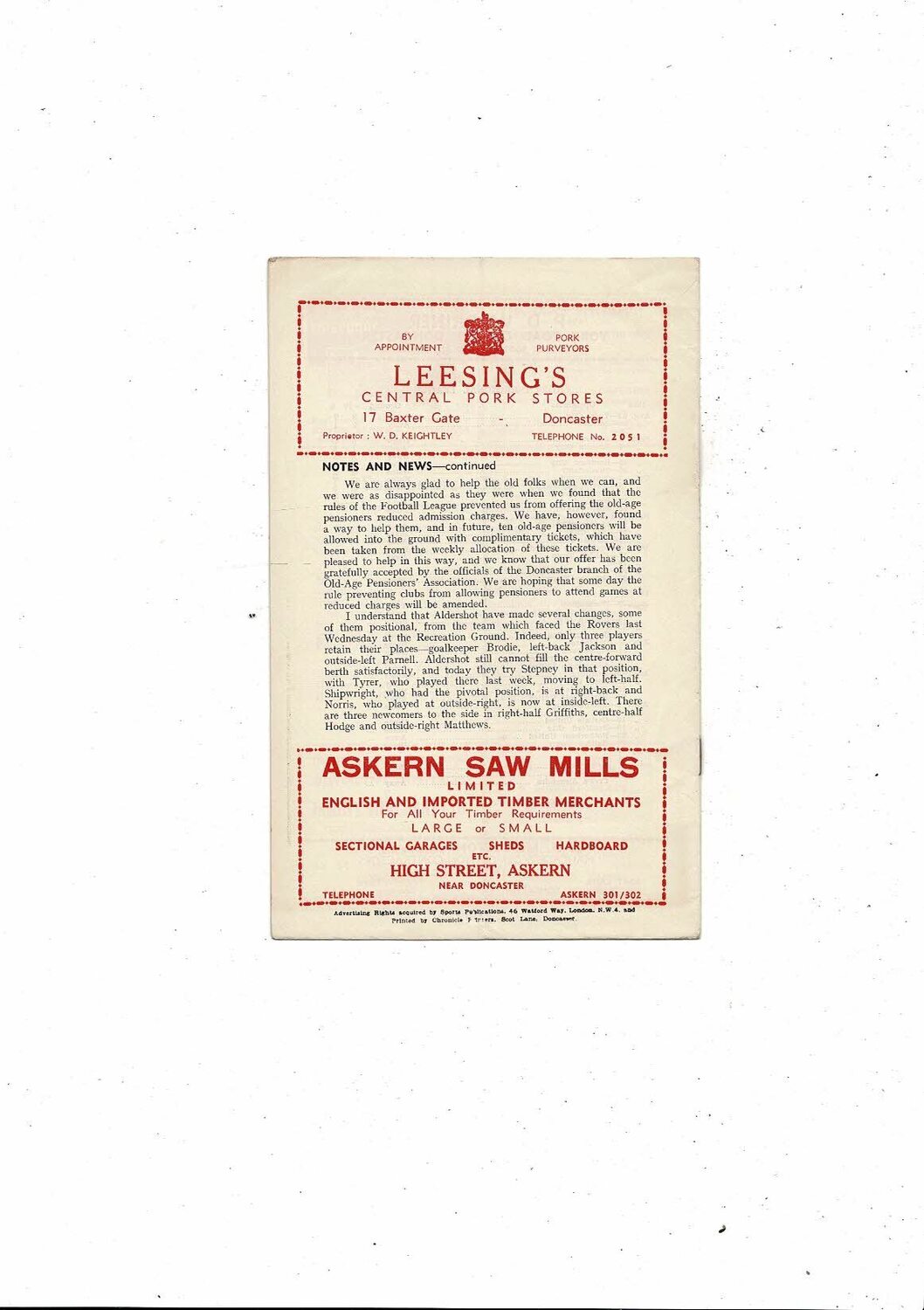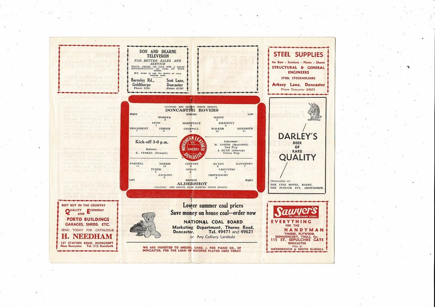 1959/60 Doncaster Rovers v Aldershot Football Programme
