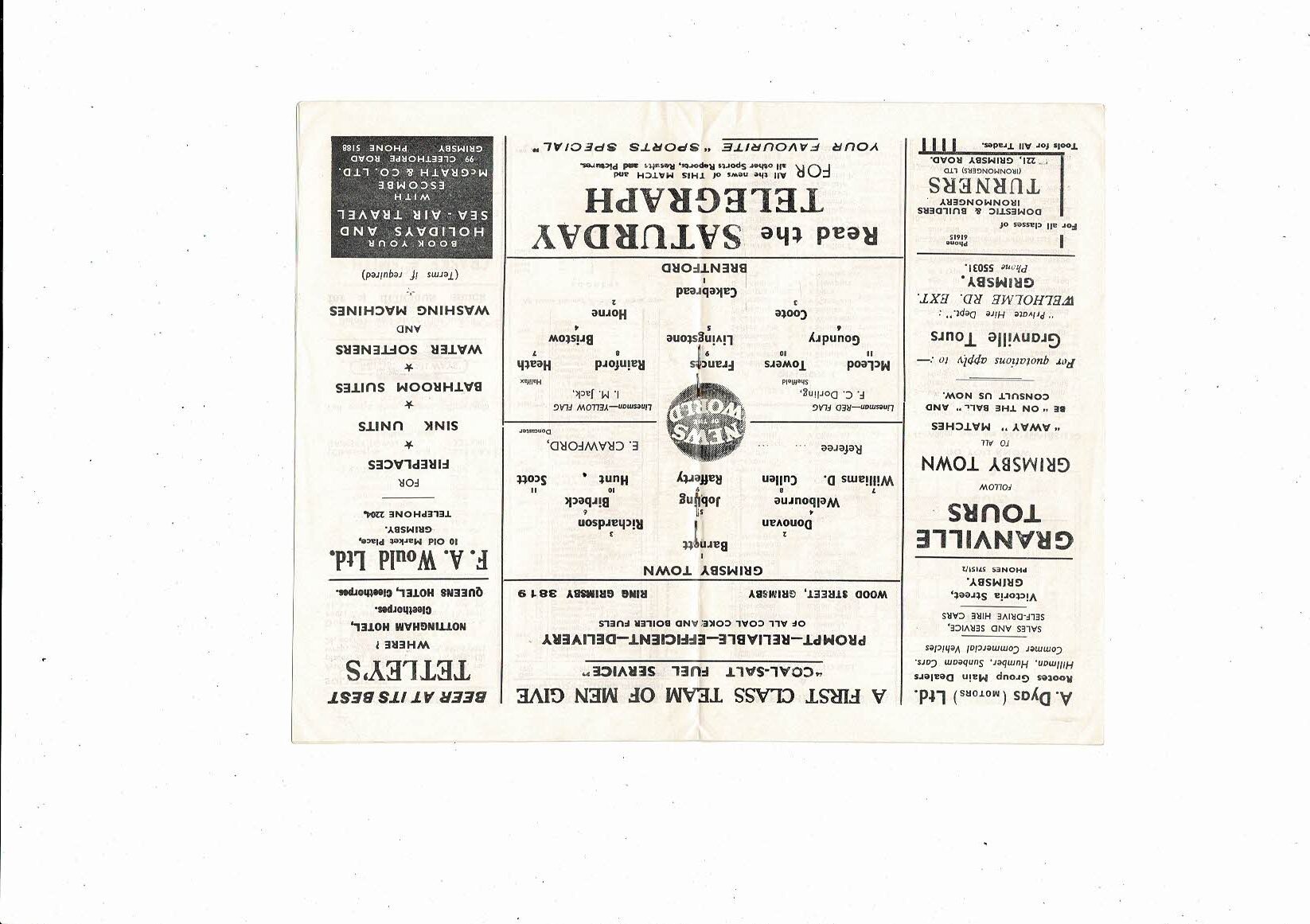 1959/60 Grimsby Town v Brentford Football Programme
