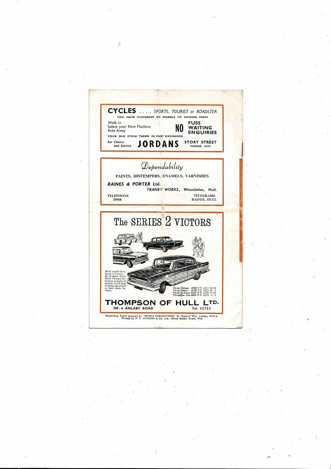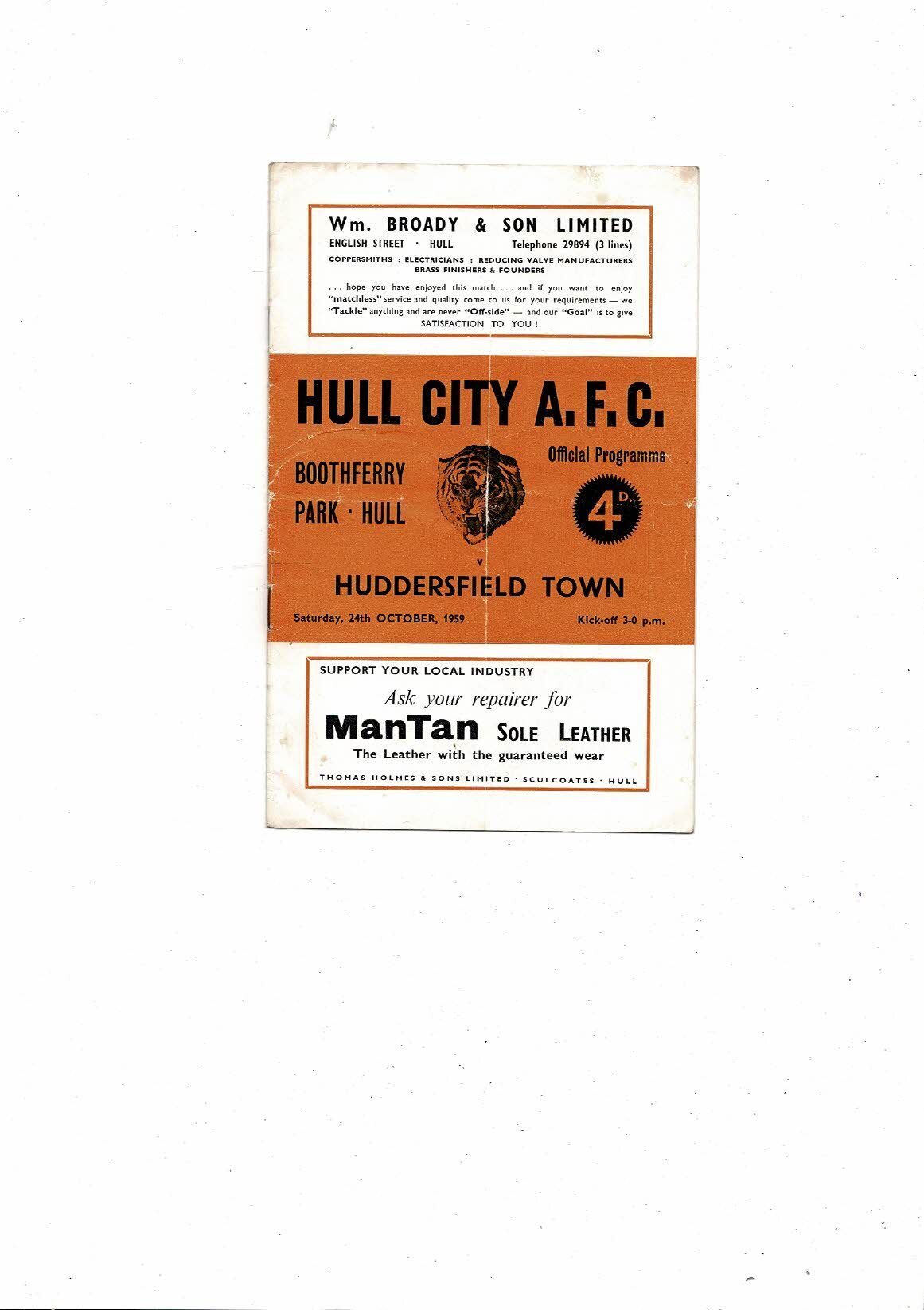 1959/60 Hull City v Huddersfield Town Football Programme
