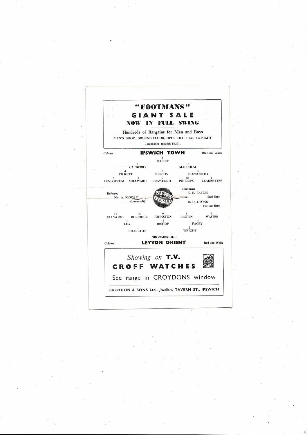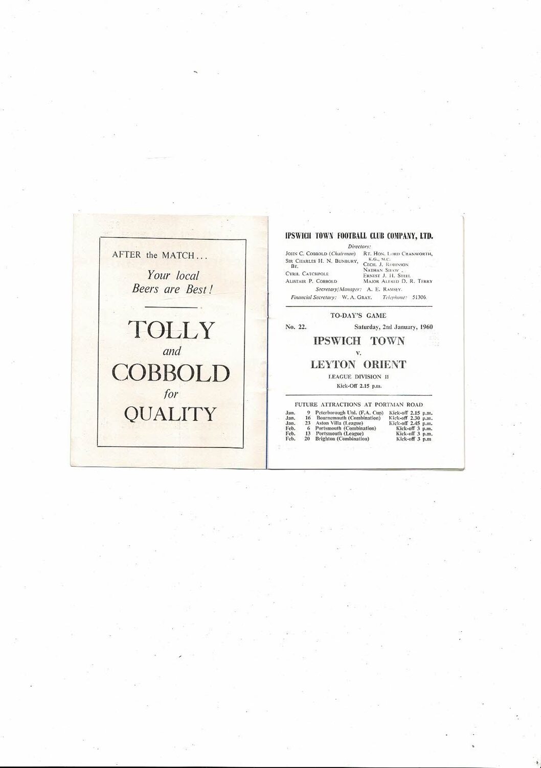 1959/60 Ipswich Town v Leyton Orient Football Programme