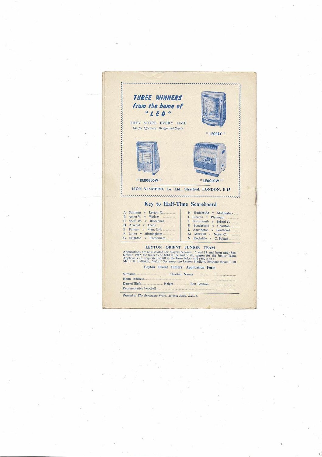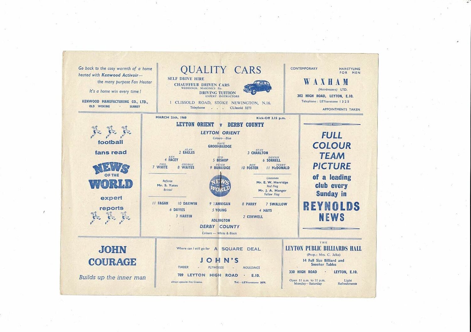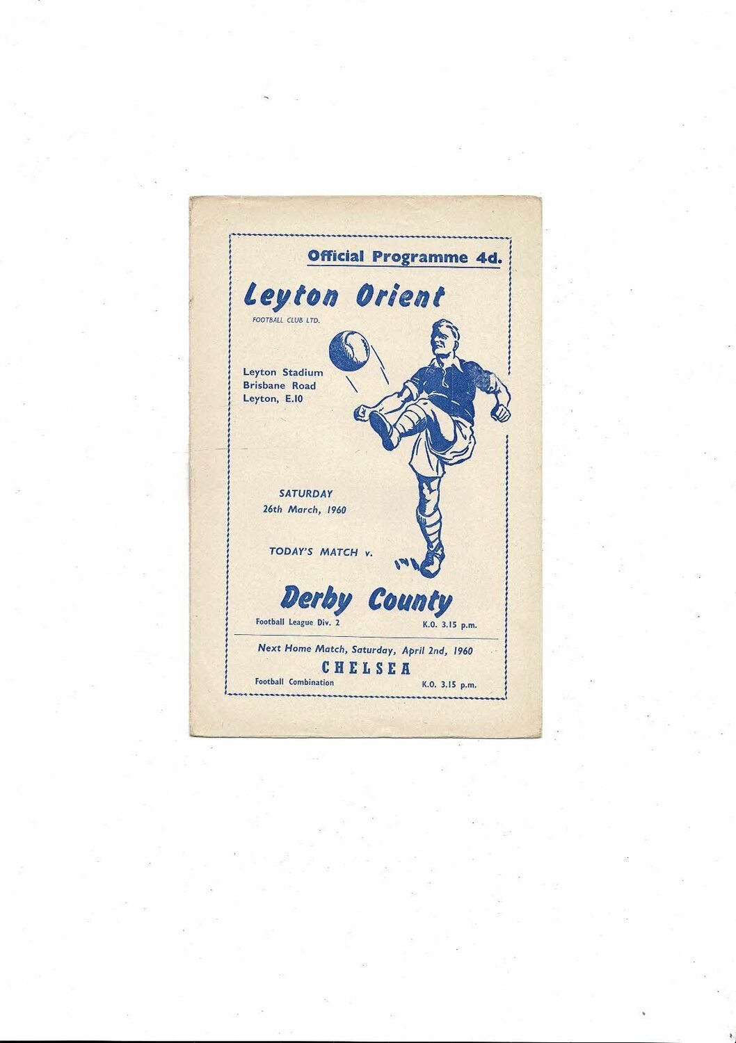 1959/60 Leyton Orient v Derby County Football Programme