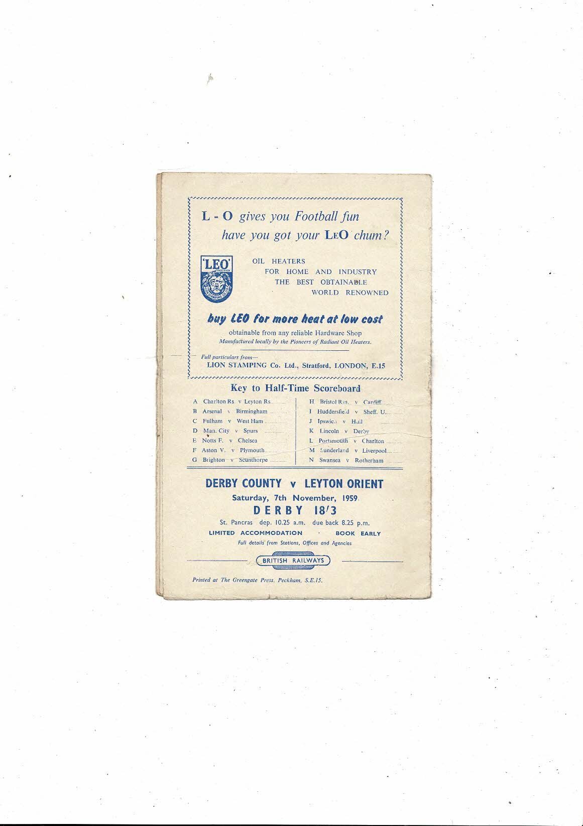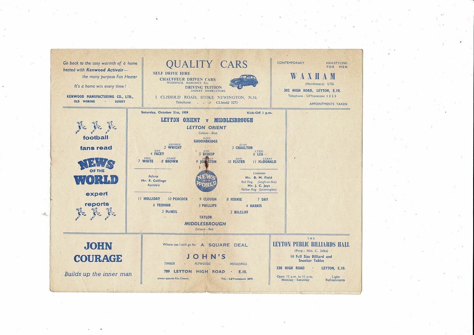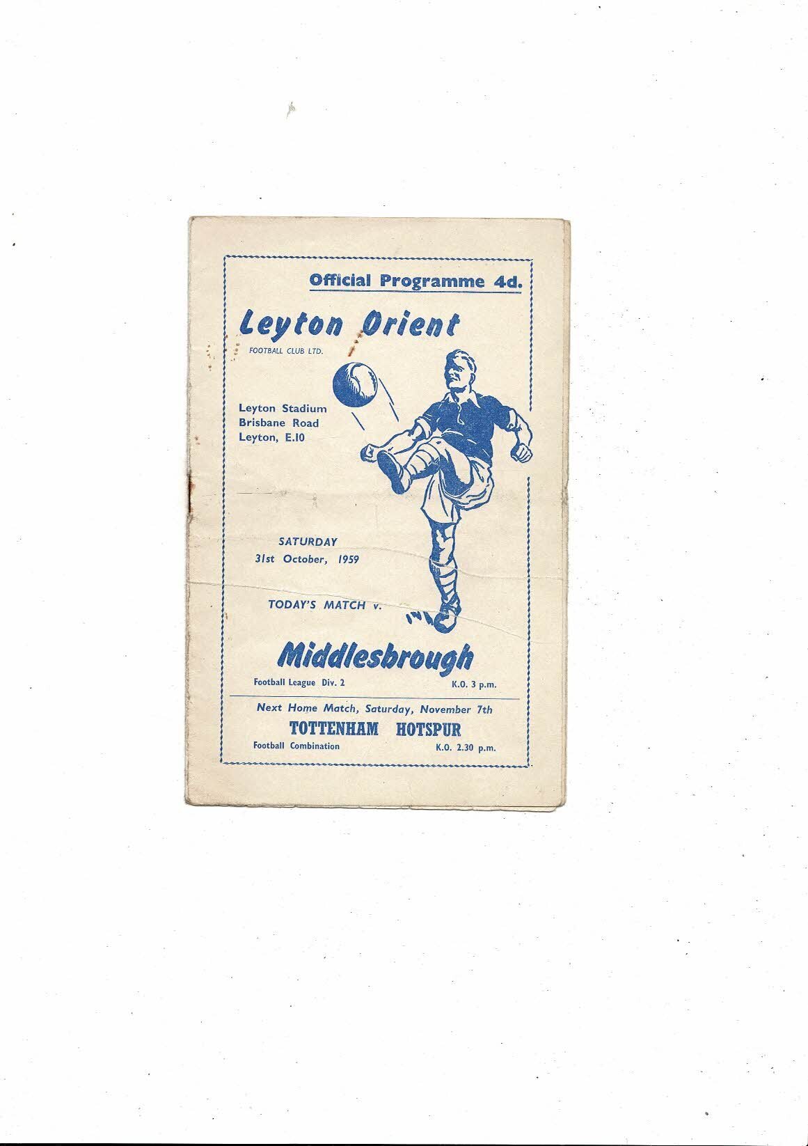 1959/60 Leyton Orient v Middlesbrough Football Programme
