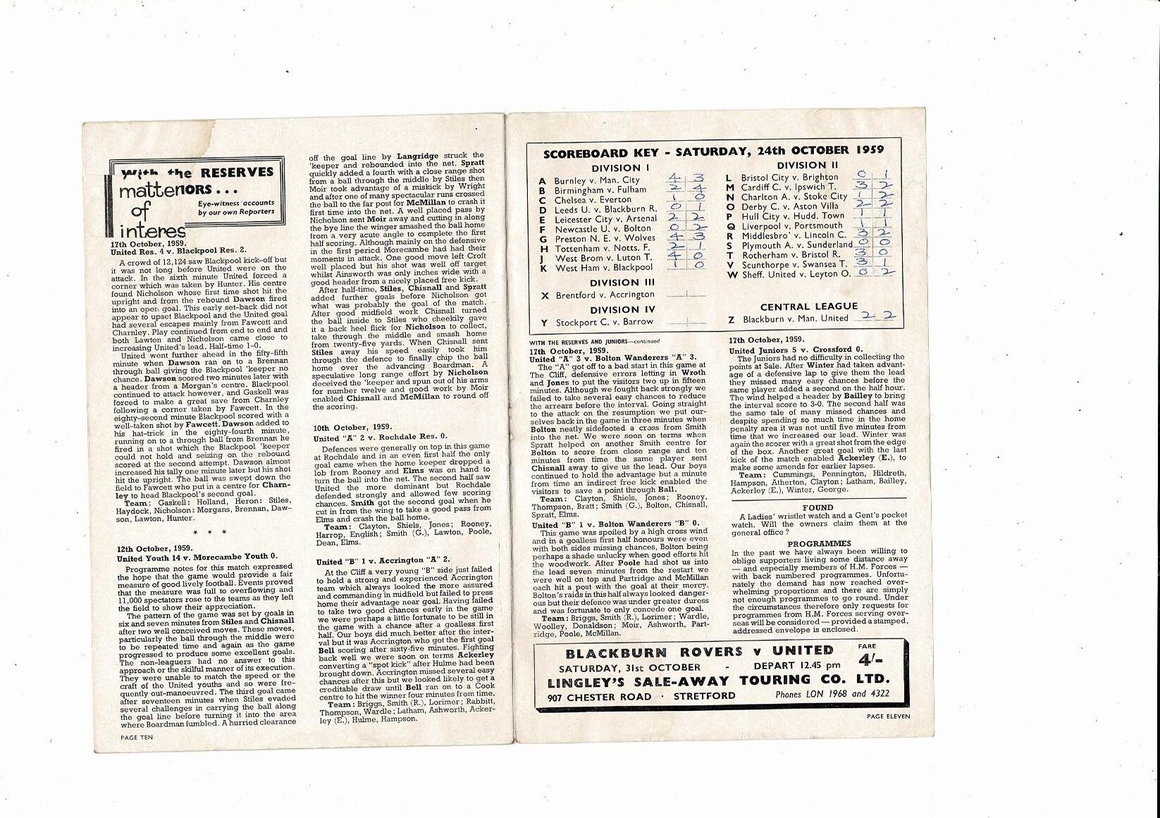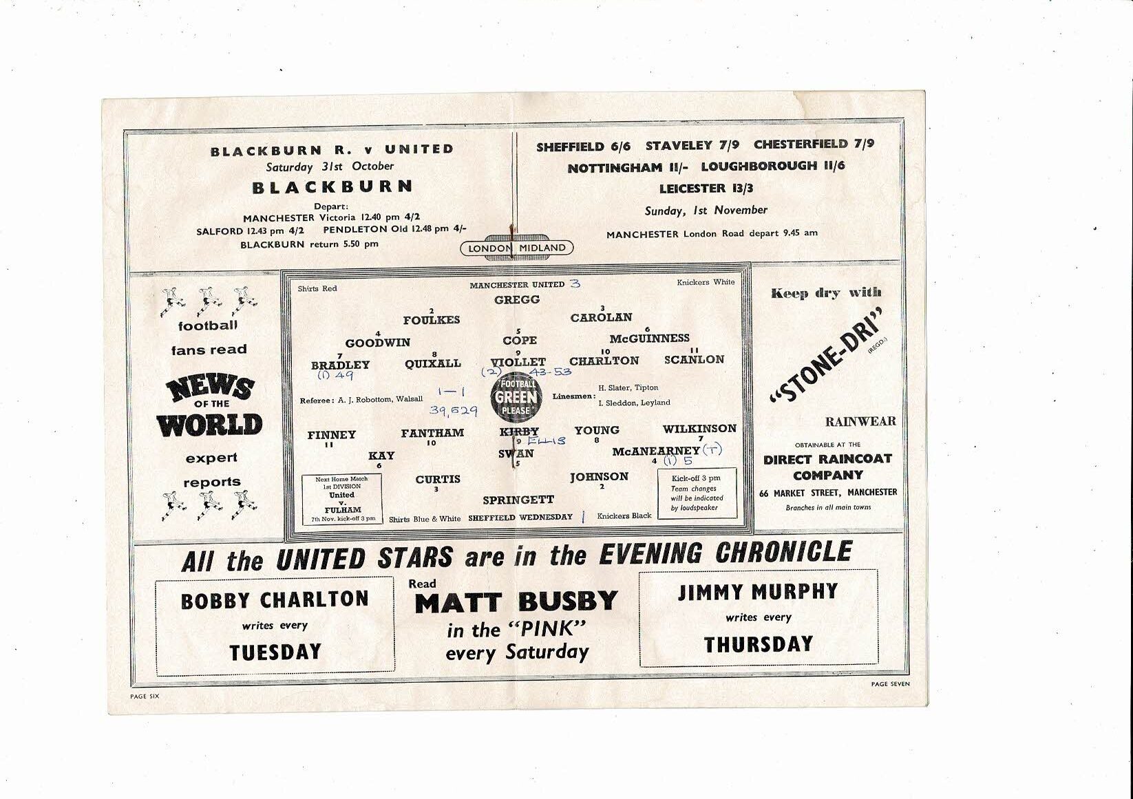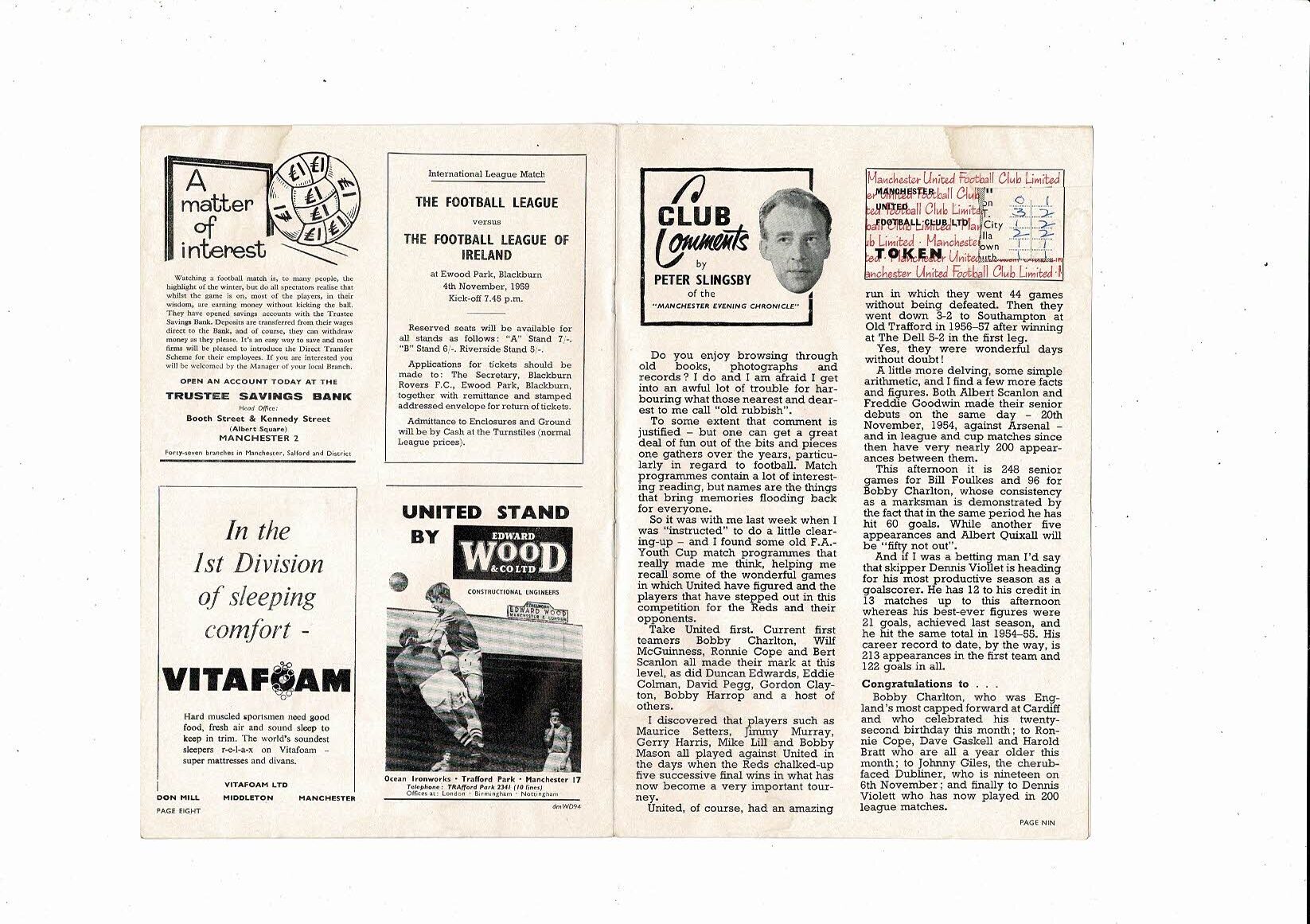 1959/60 Manchester United v Sheffield Wednesday Football Programme