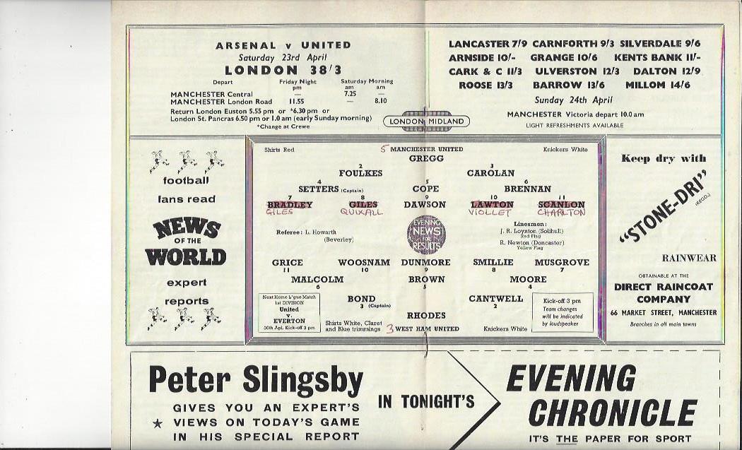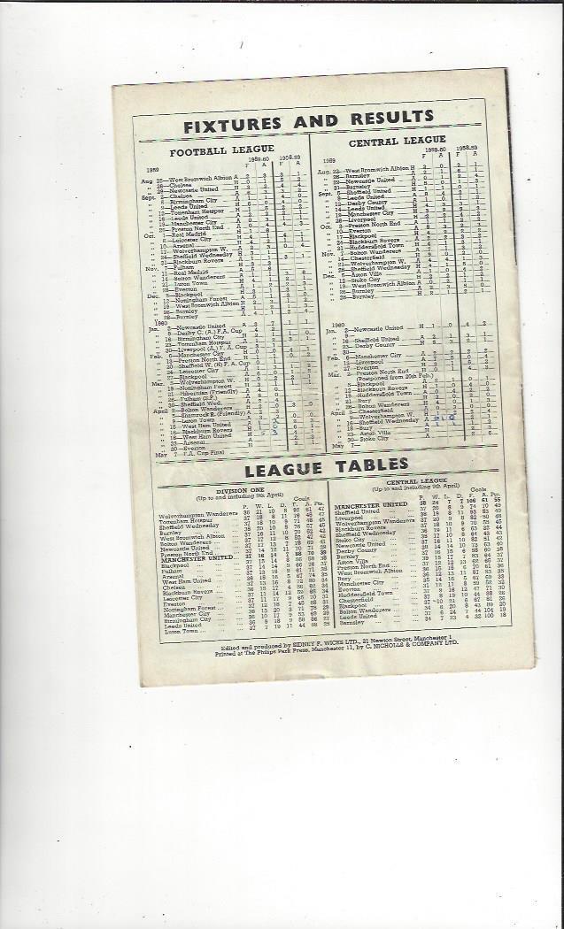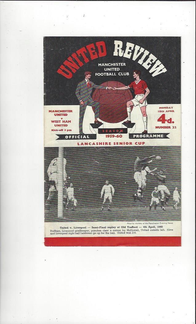 1959/60 Manchester United v West Ham United Football Programme