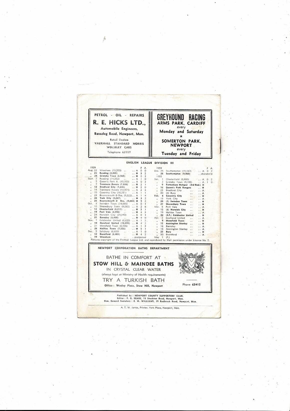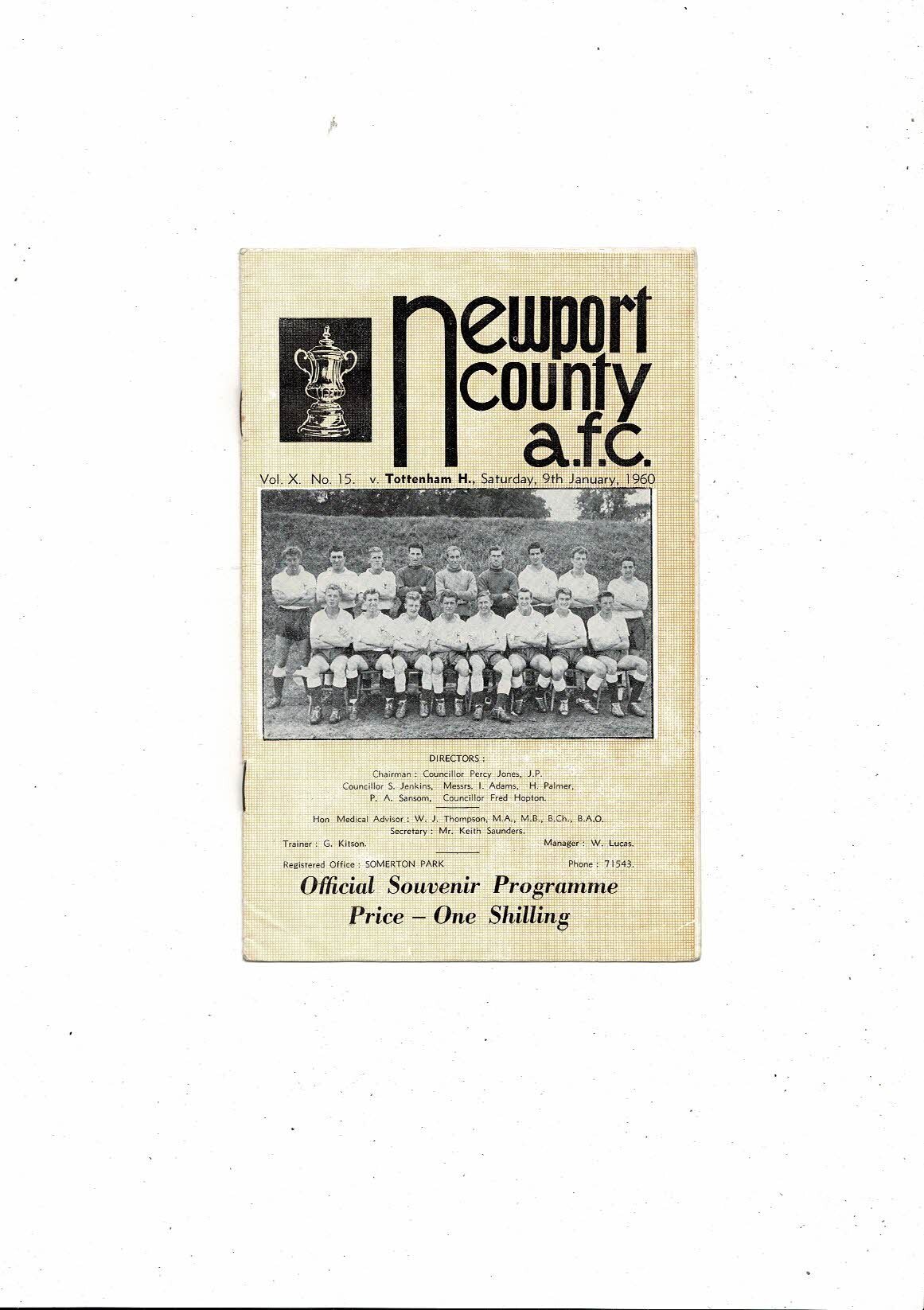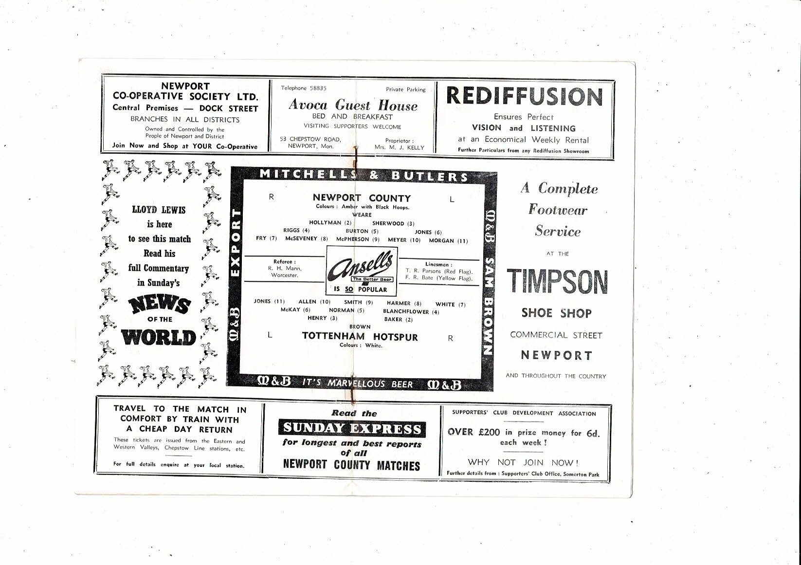 1959/60 Newport County v Tottenham Hotspur FA Cup Football Programme