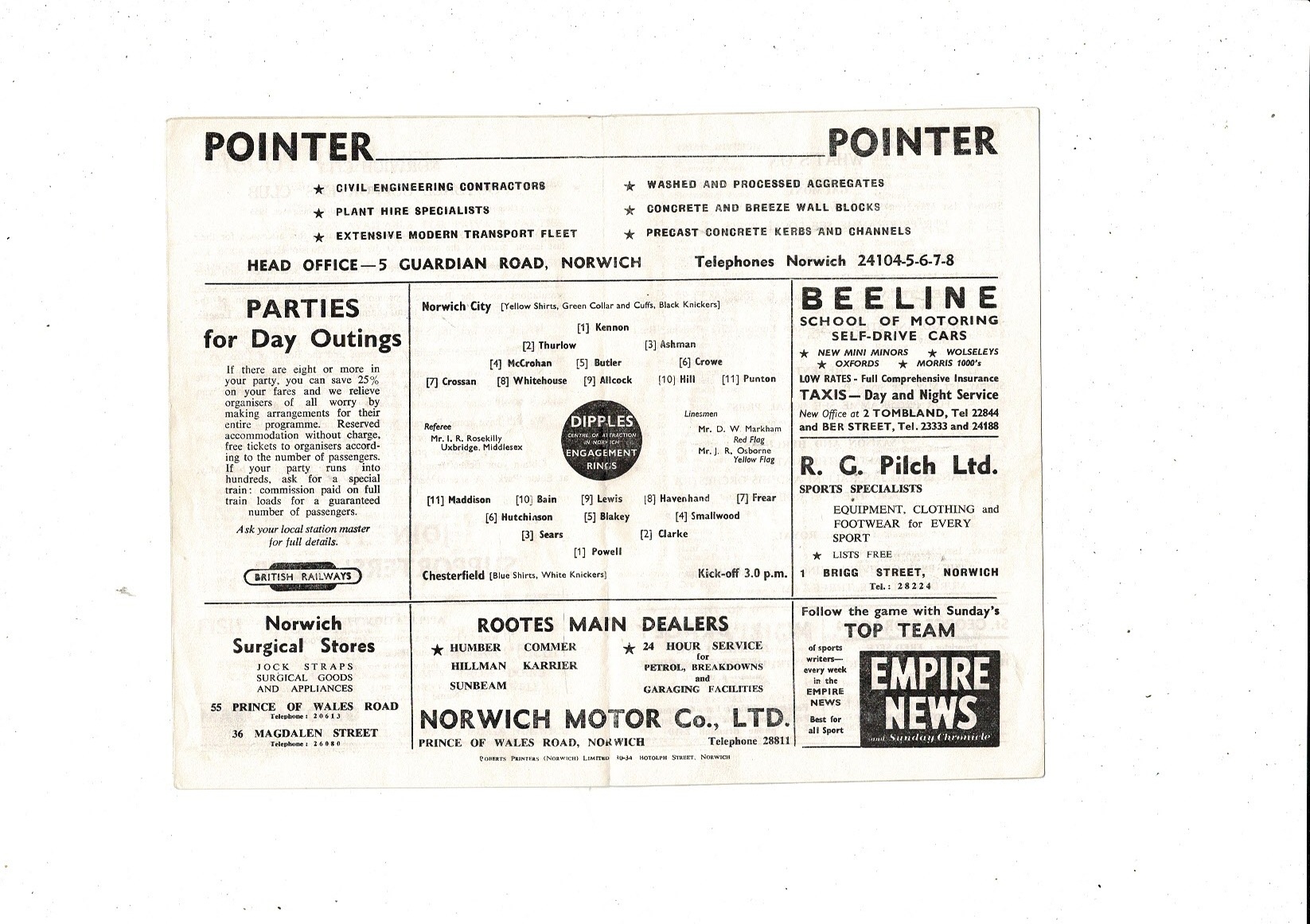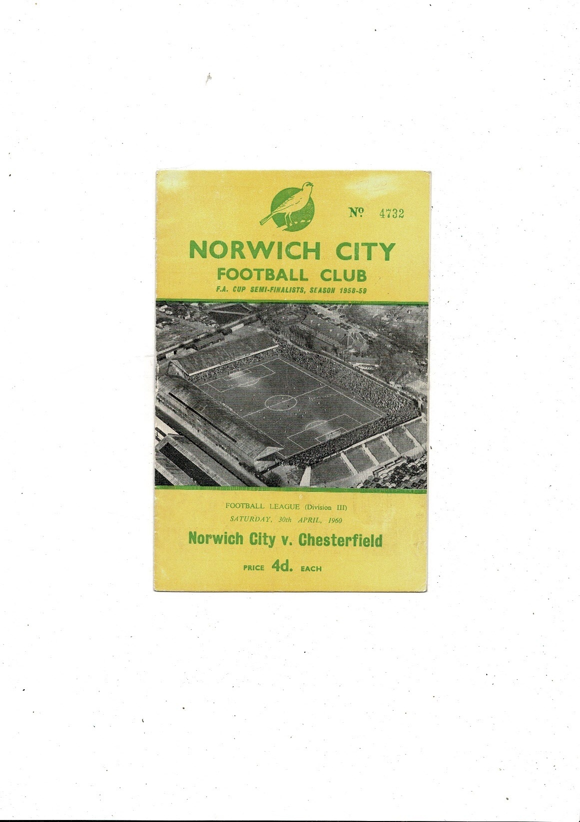 1959/60 Norwich City v Chesterfield Football Programme
