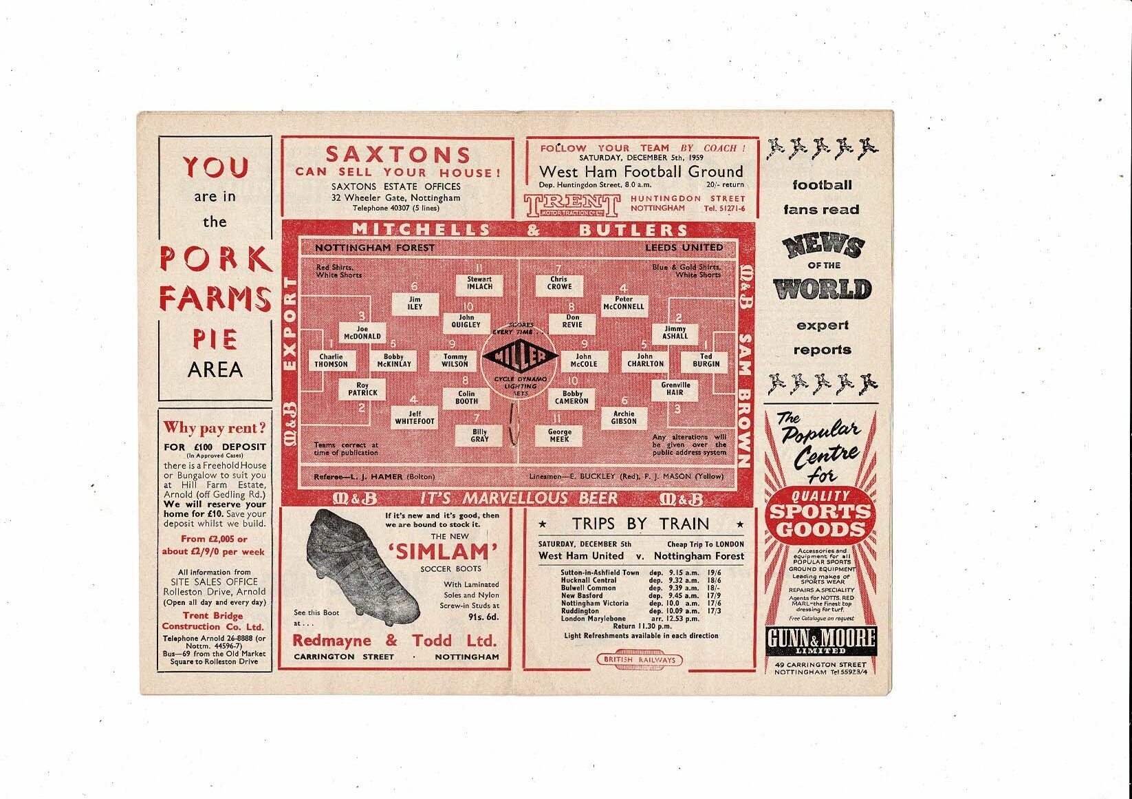 1959/60 Nottingham Forest v Leeds United Football Programme