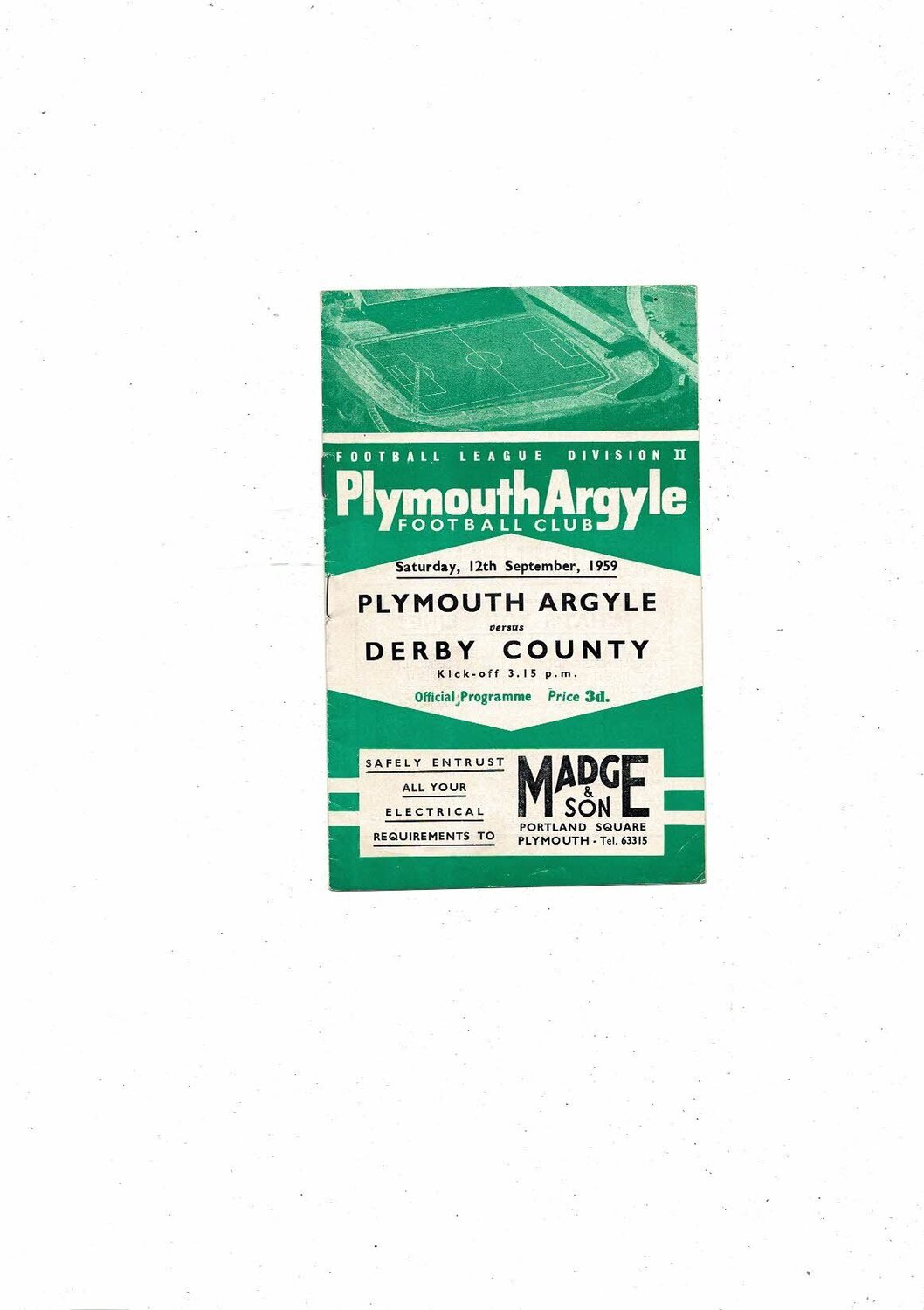 1959/60 Plymouth Argyle v Derby County Football Programme