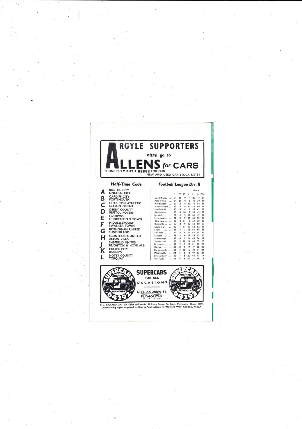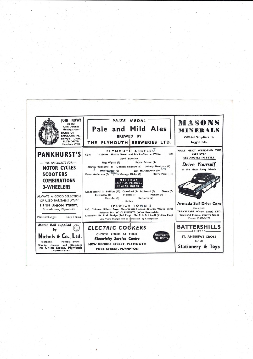 1959/60 Plymouth Argyle v Ipswich Town Football Programme