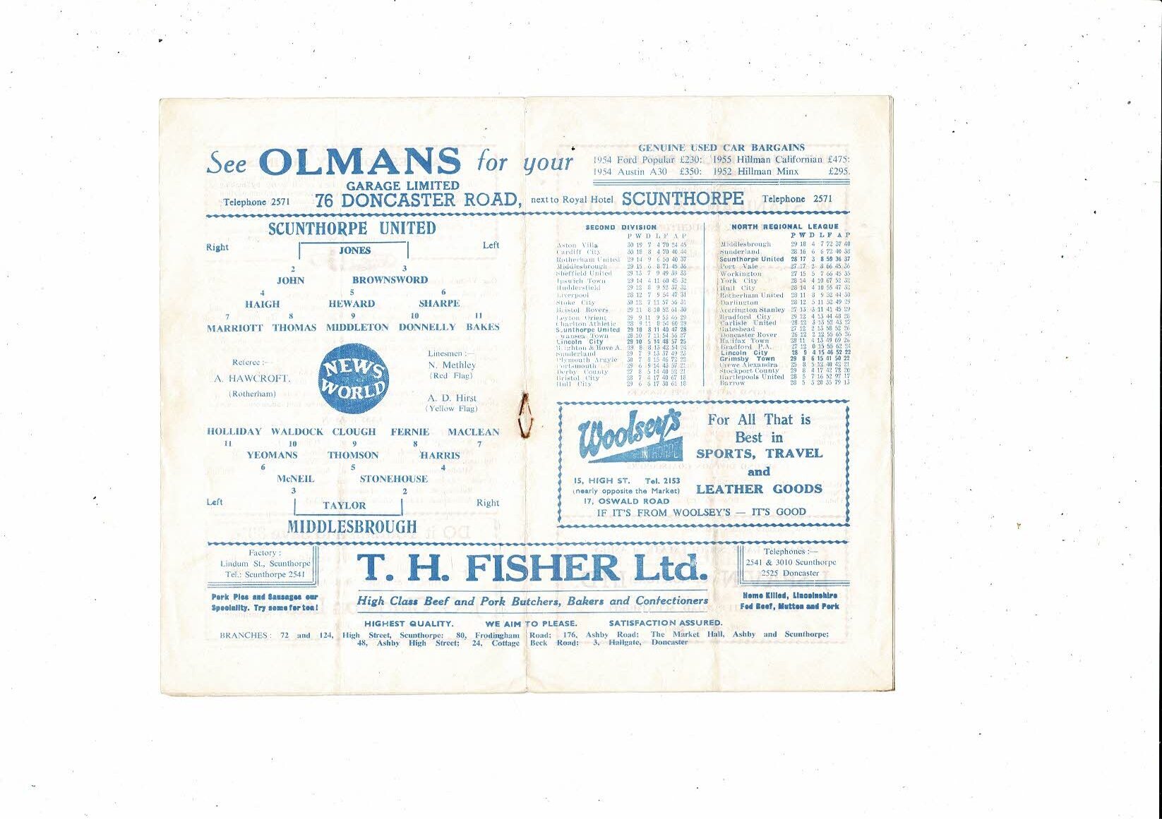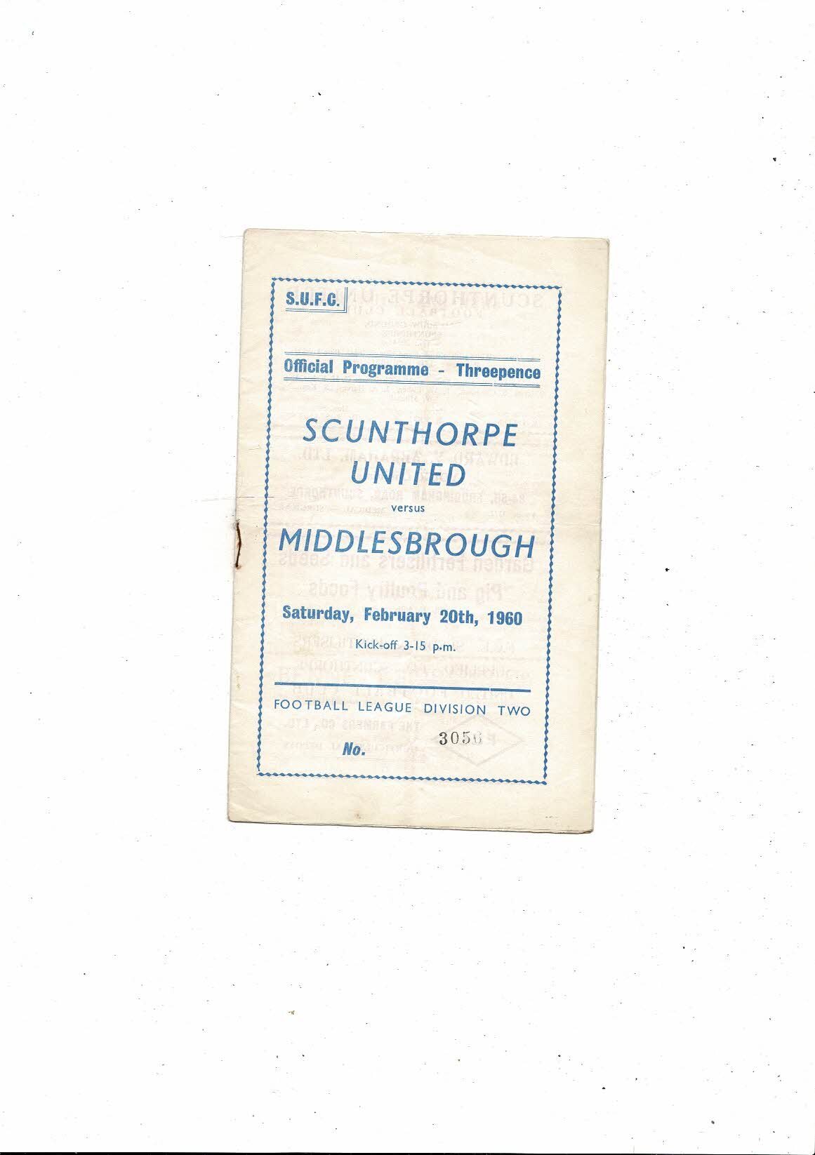 1959/60 Scunthorpe United v Middlesbrough Football Programme