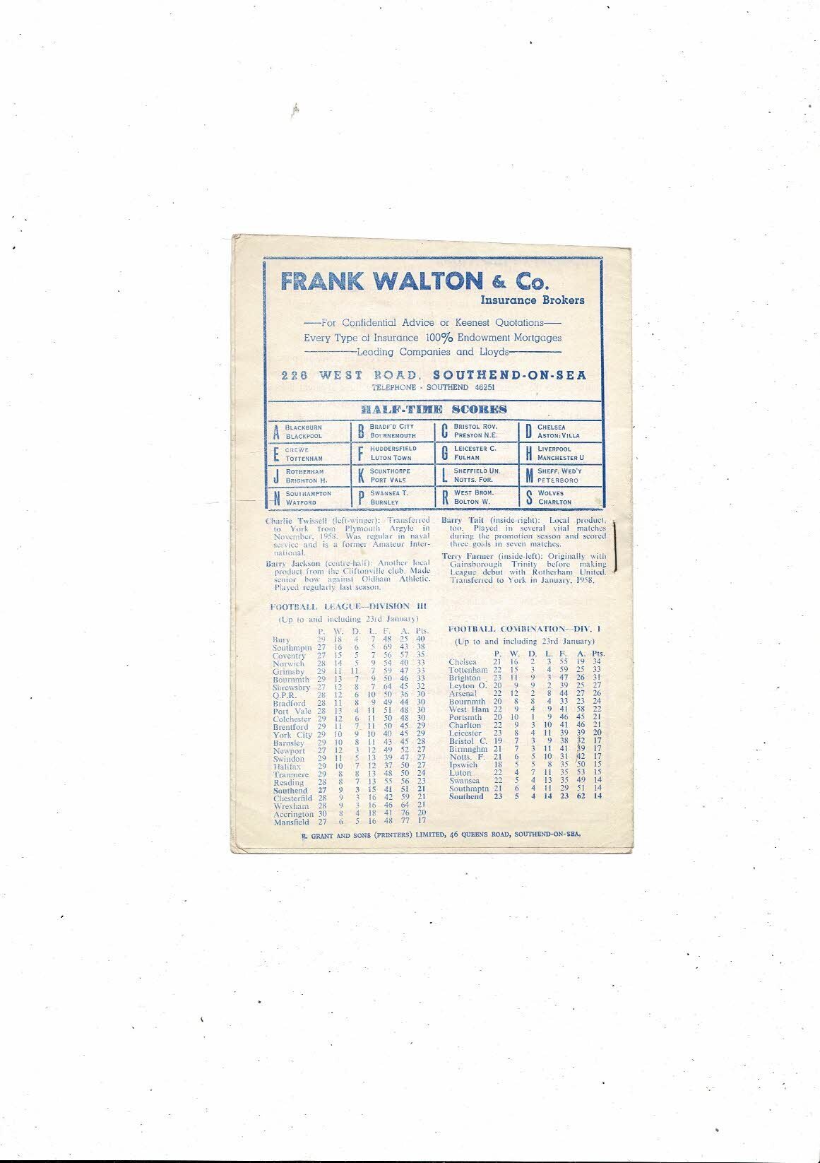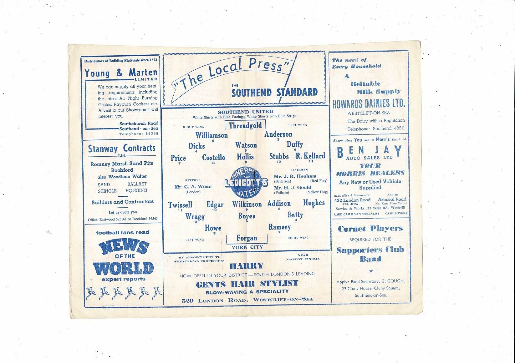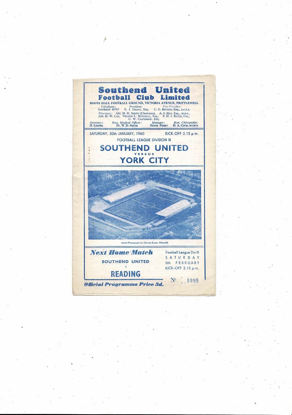 1959/60 Southend United v York City Football Programme
