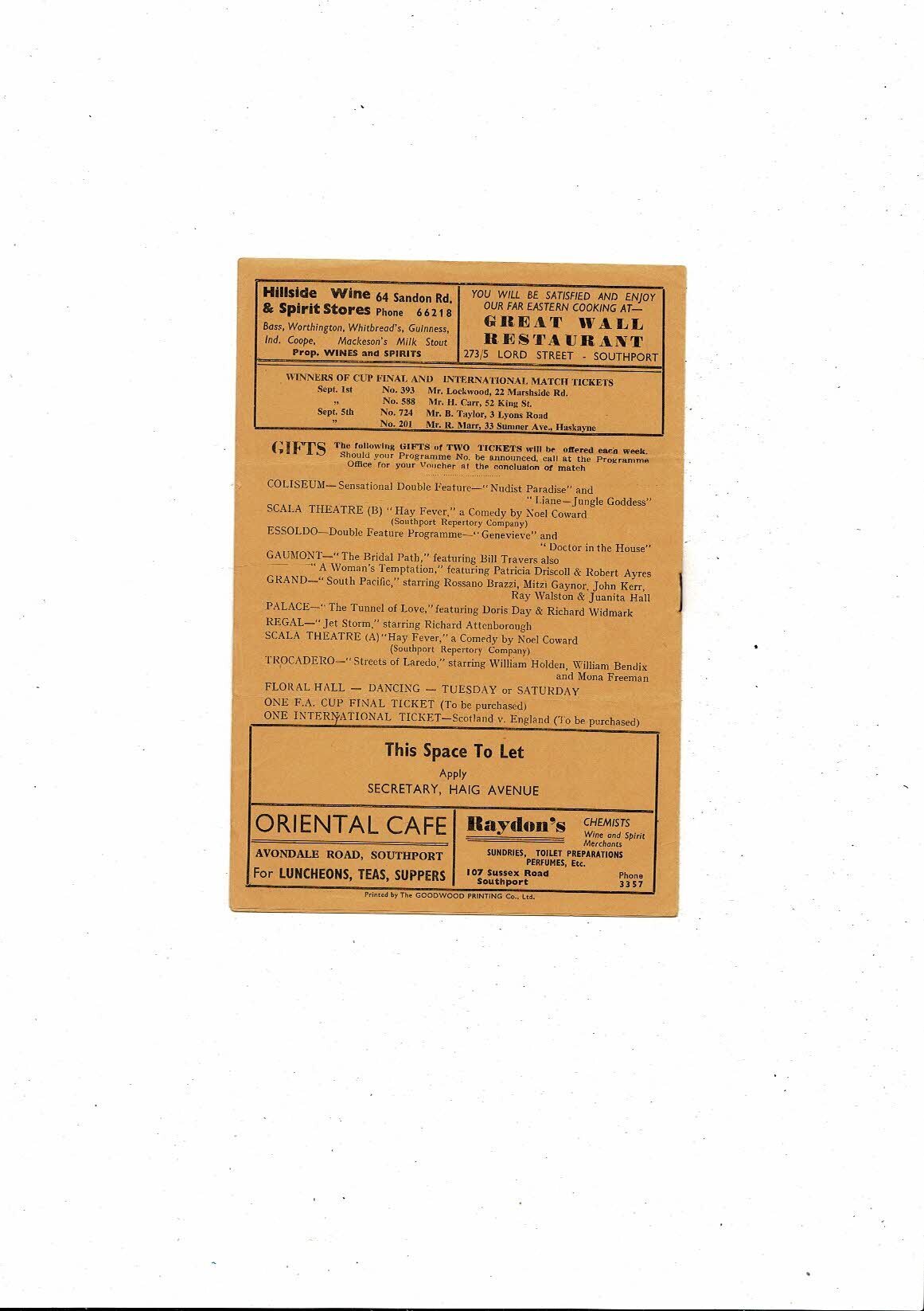 This Original Football Programme is creased with a couple of tiny nic's on back page, small tear at both ends of spine, rusty staple, score on front, score & scorers noted on team page. Please see scans.