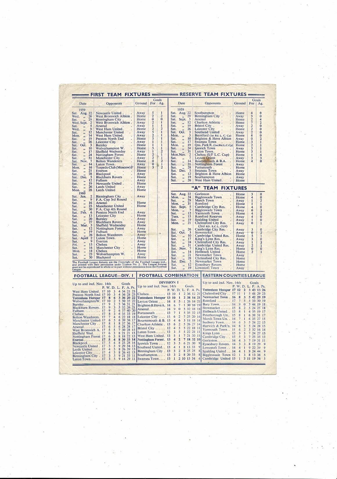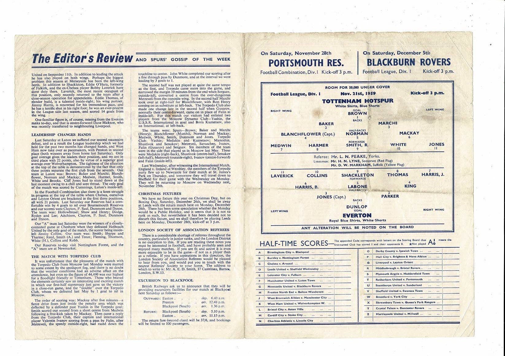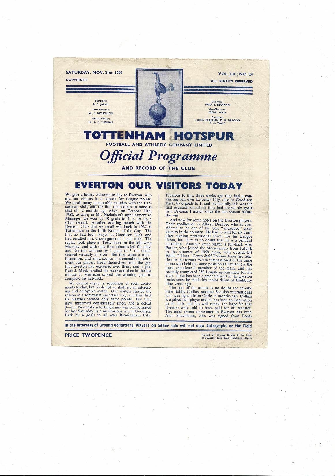 1959/60 Tottenham Hotspur v Everton Football Programme