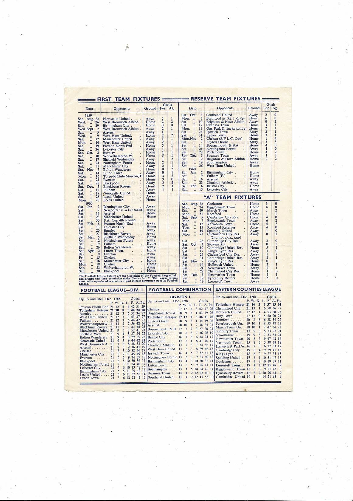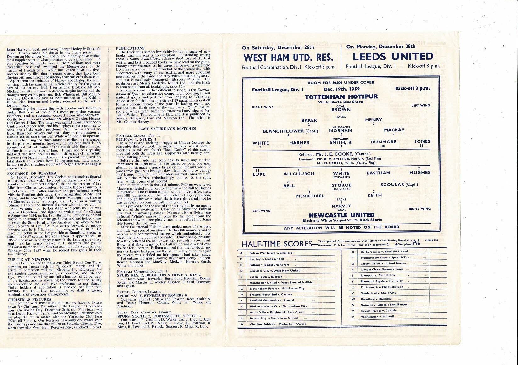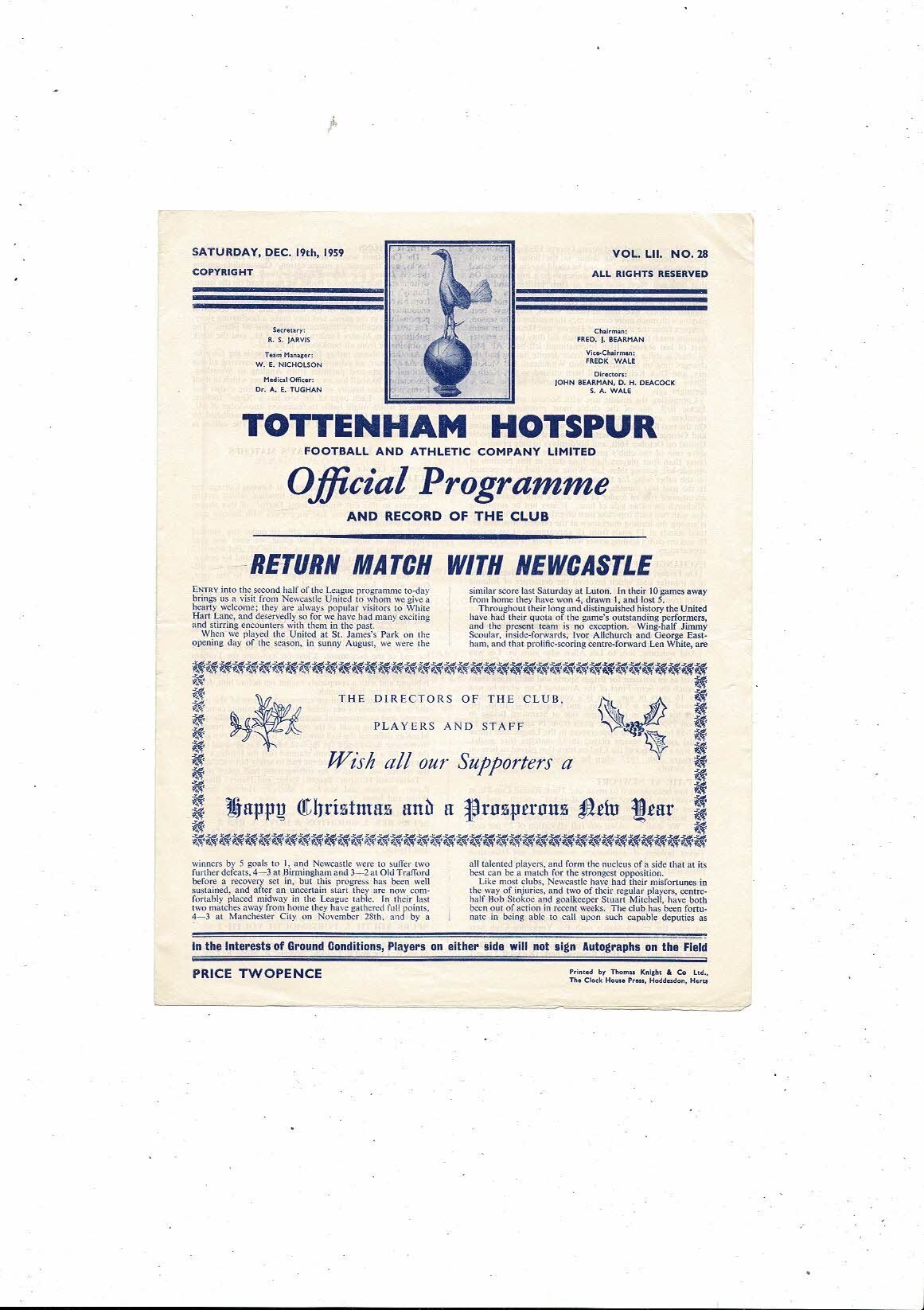 1959/60 Tottenham Hotspur v Newcastle United Football Programme