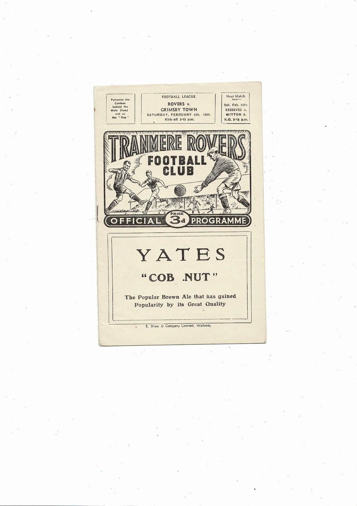 1959/60 Tranmere Rovers v Grimsby Town Football Programme