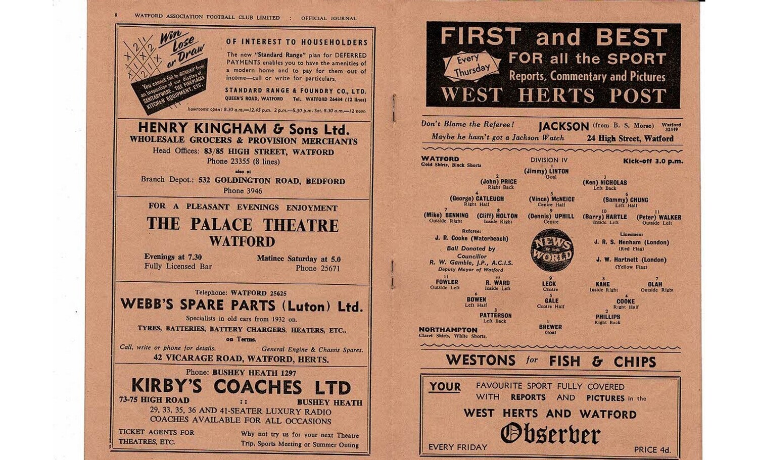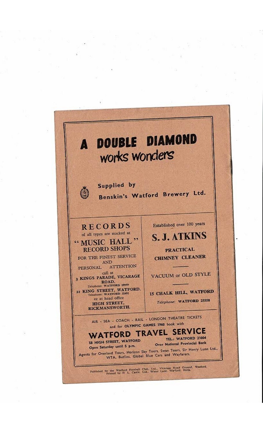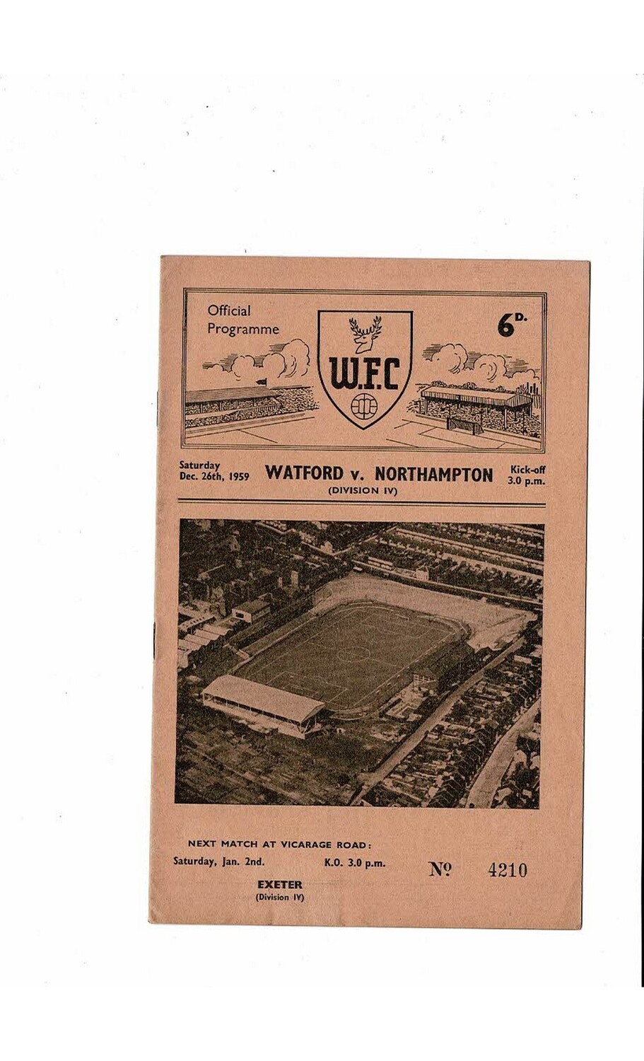 1959/60 Watford v Northampton Town Football Programme Dec. Abandoned
