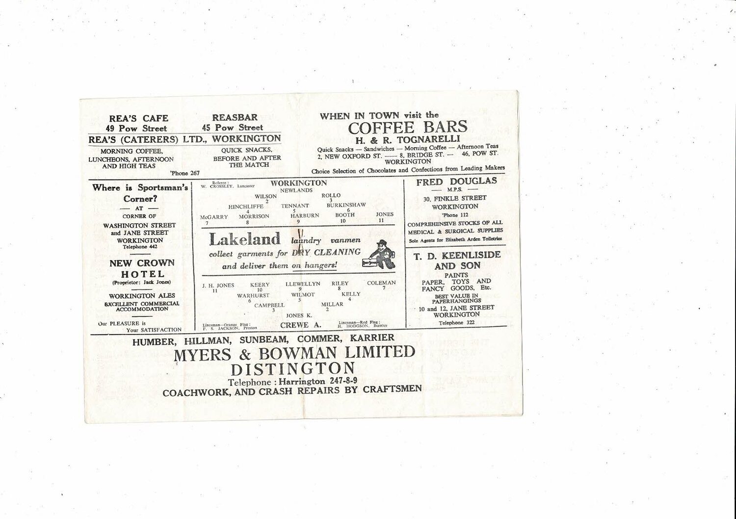 This Original Football Programme is creased also has a fold with staple starting to rust & small tear on front cover. No handwriting. Please see scans.