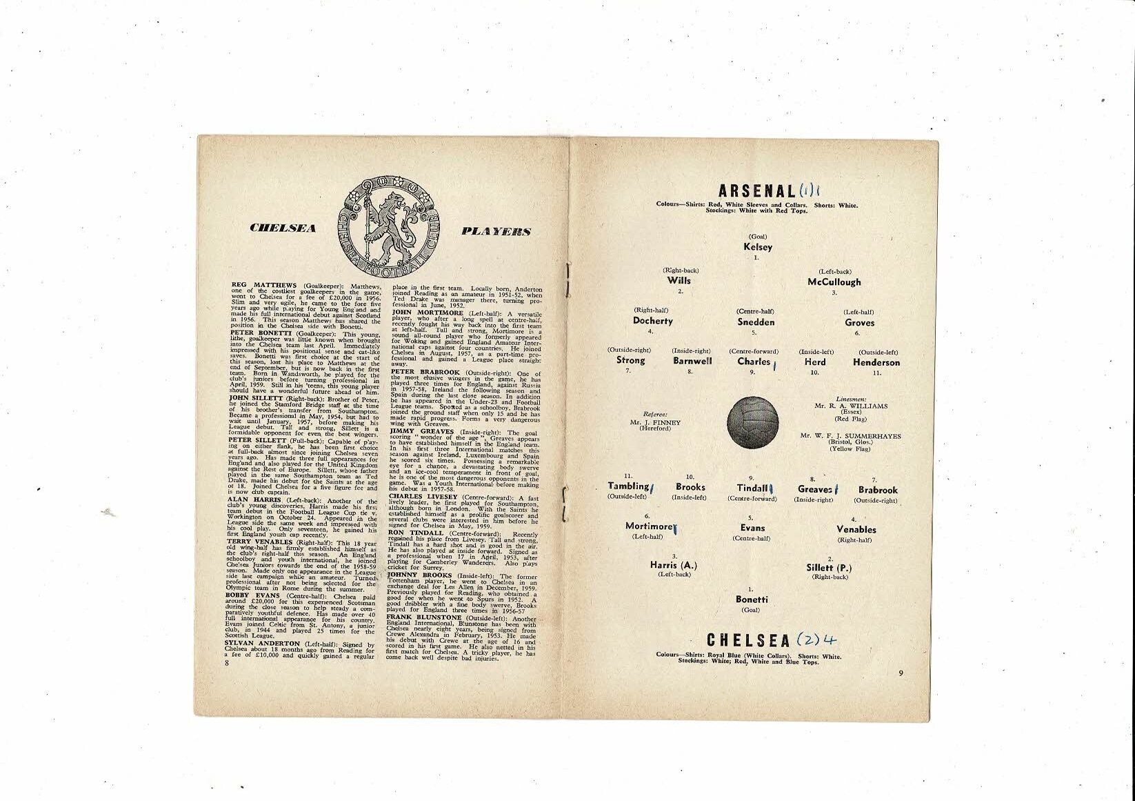 1960/61 Arsenal v Chelsea Football Programme