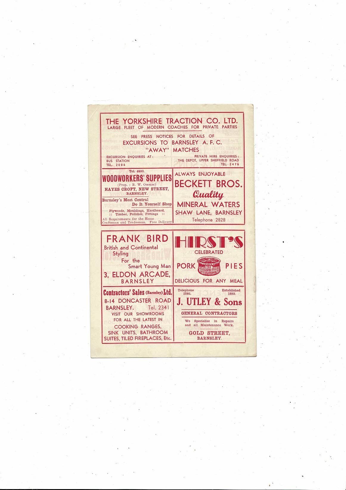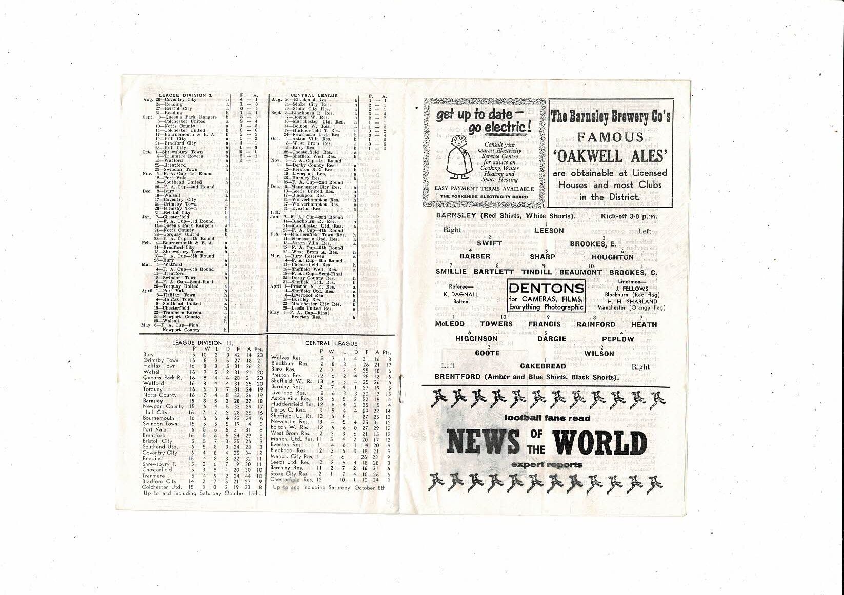 1960/61 Barnsley v Brentford Football Programme