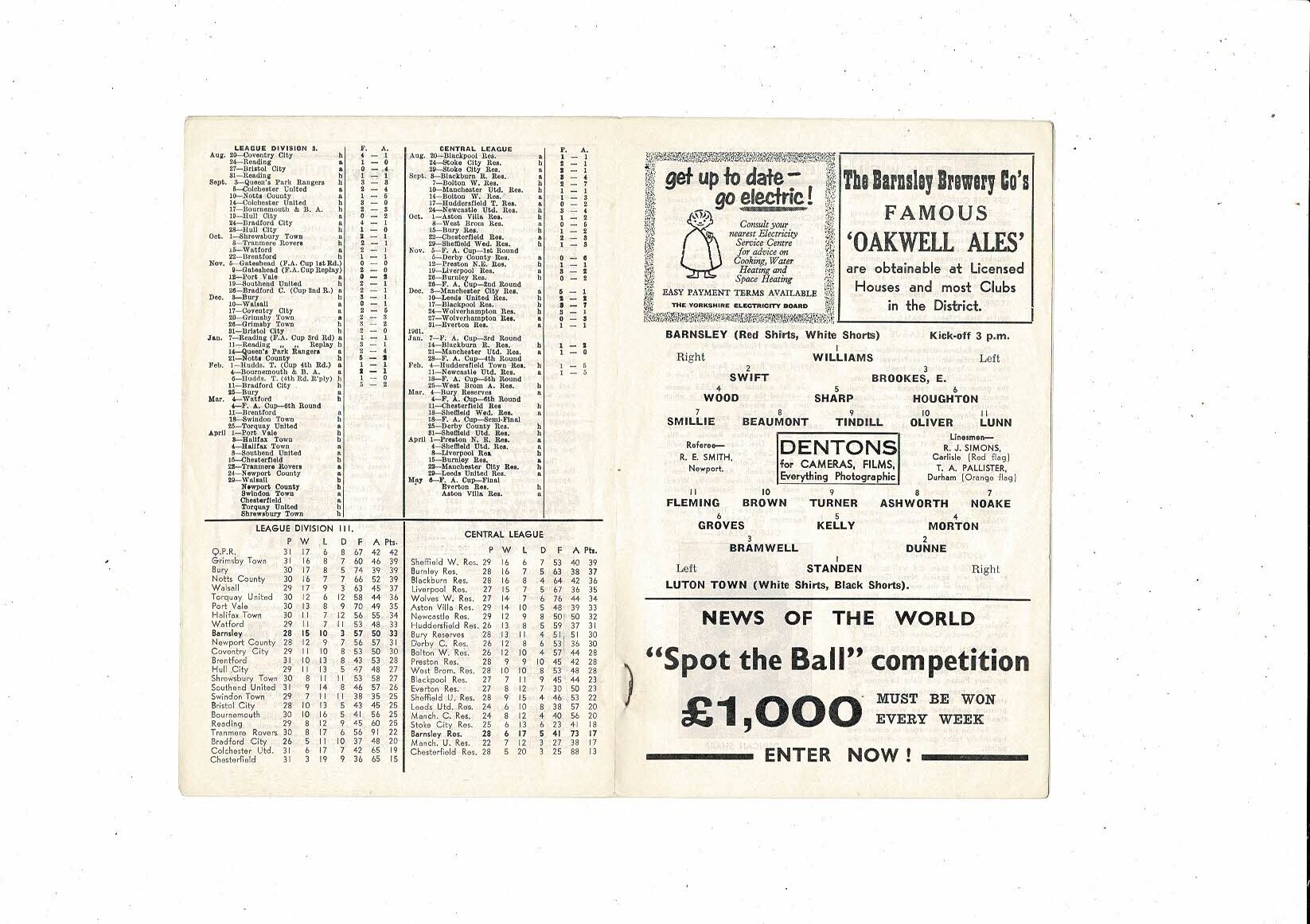 1960/61 Barnsley v Luton Town FA Cup Football Programme