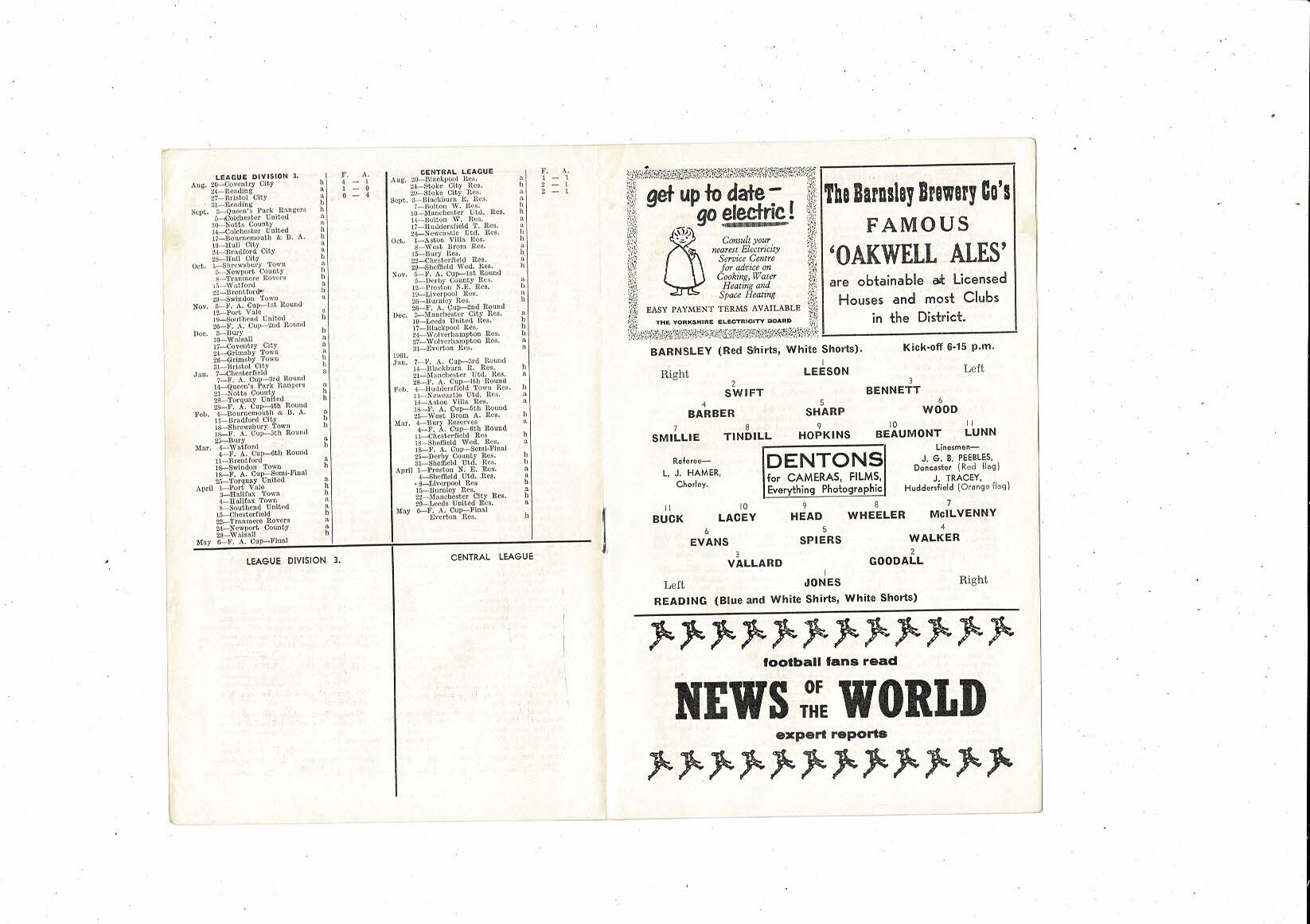 1960/61 Barnsley v Reading Football Programme