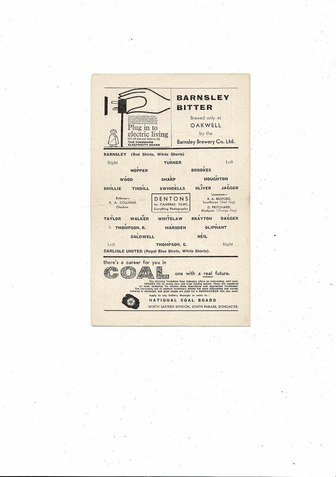 1961/62 Barnsley v Carlisle FA Cup Football Programme