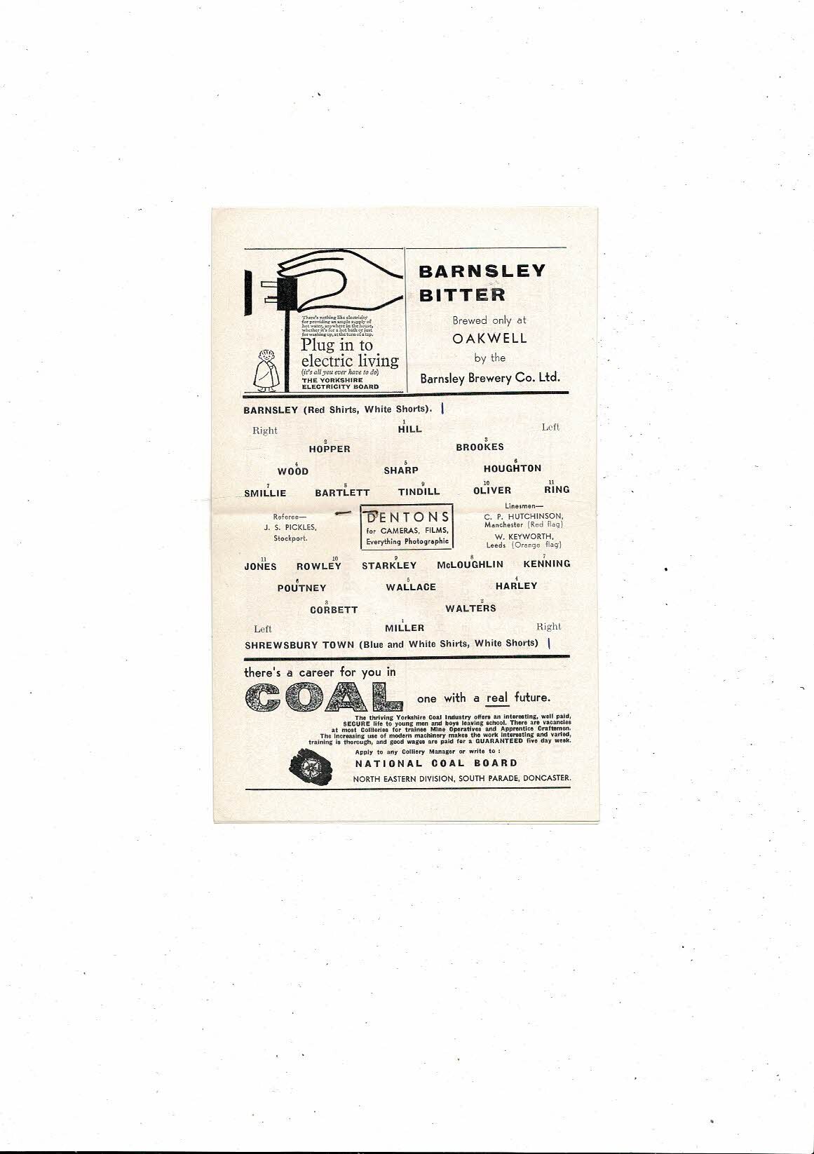 1961/62 Barnsley v Shrewsbury Town Football Programme