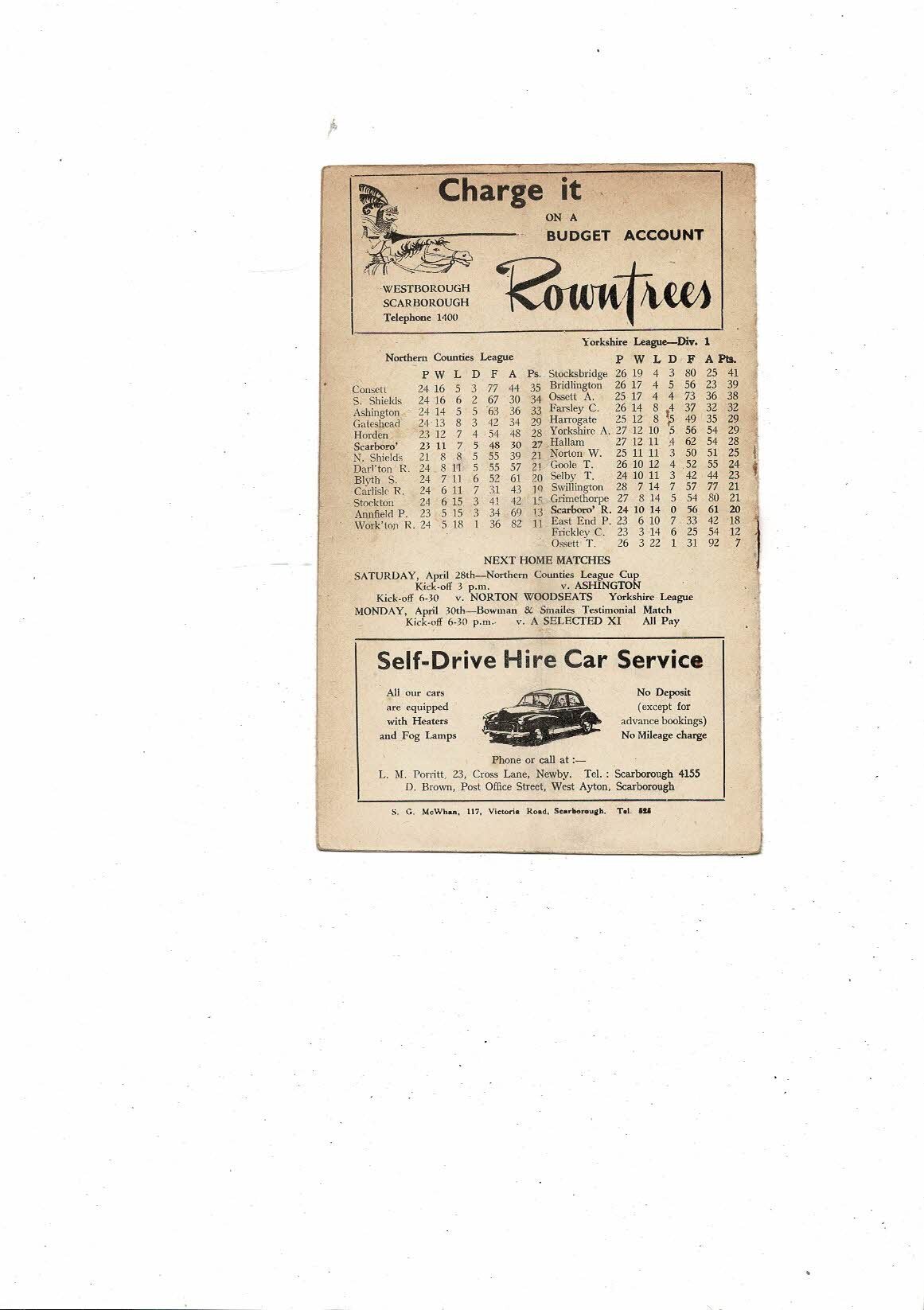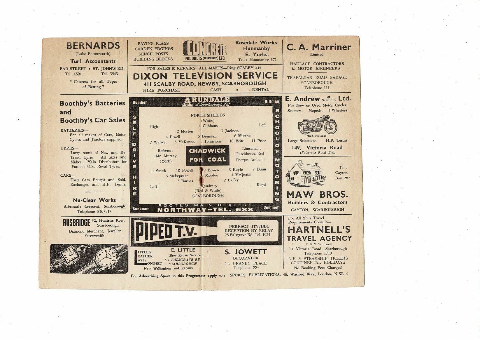 1961/62 Scarborough v North Shields Northern Counties League Cup Programme