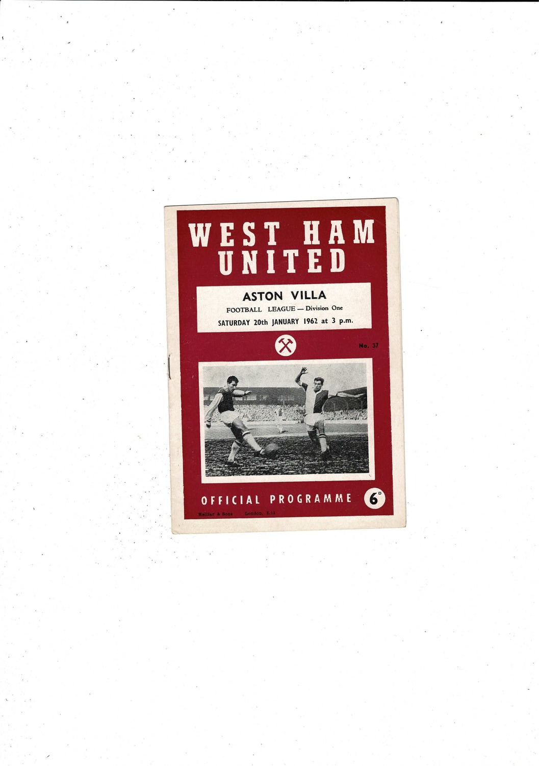 1961/62 West Ham United v Aston Villa Football Programme