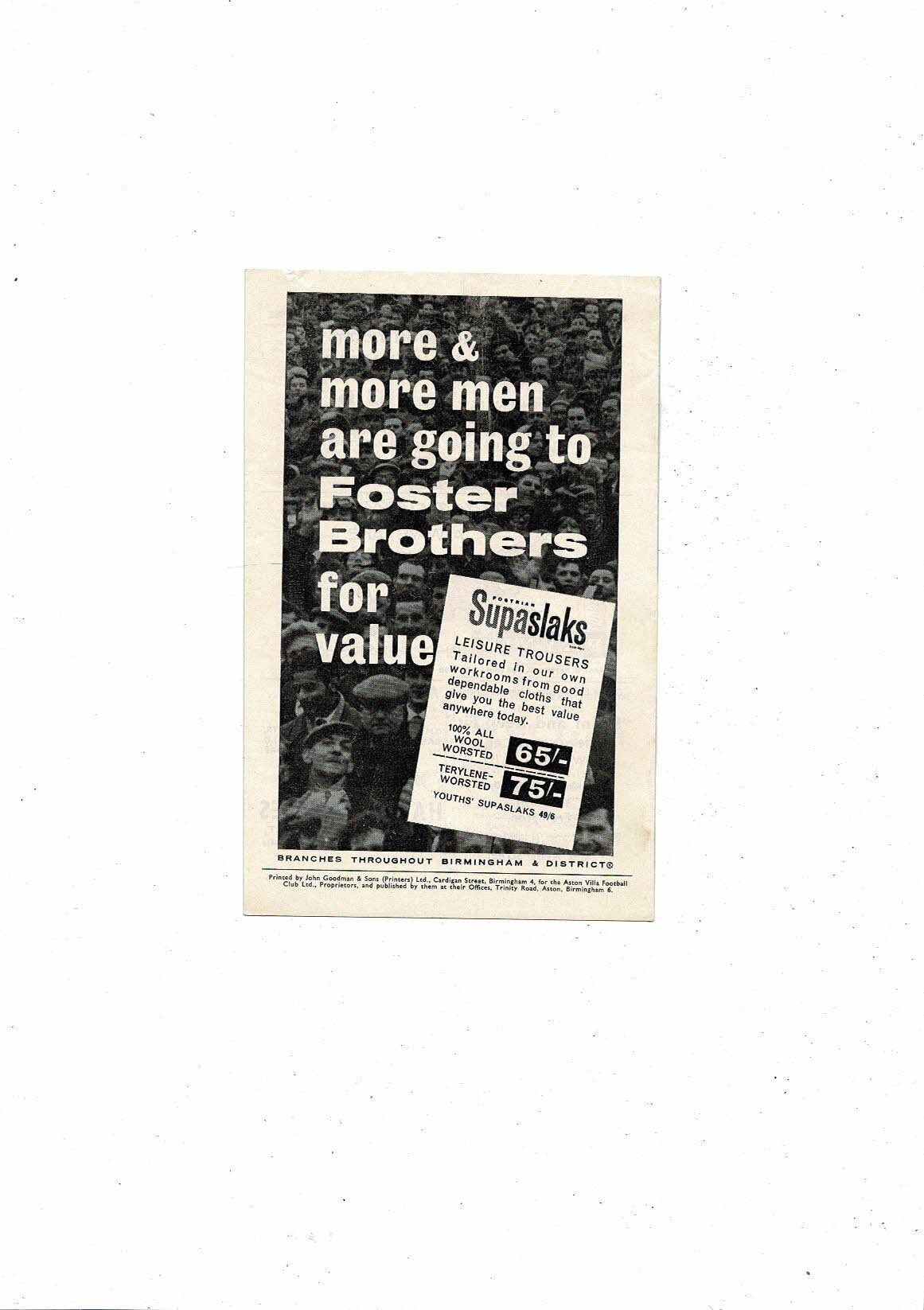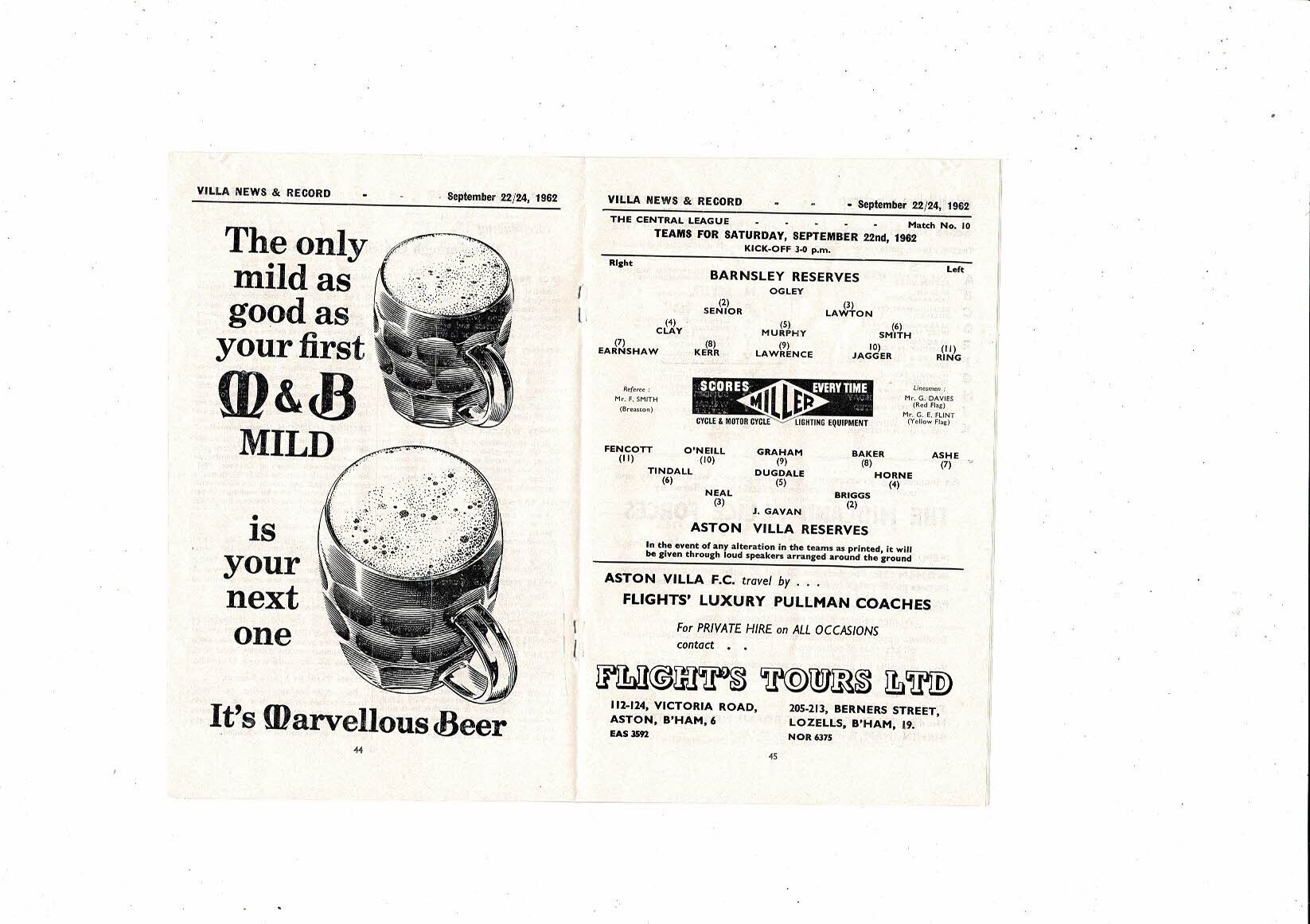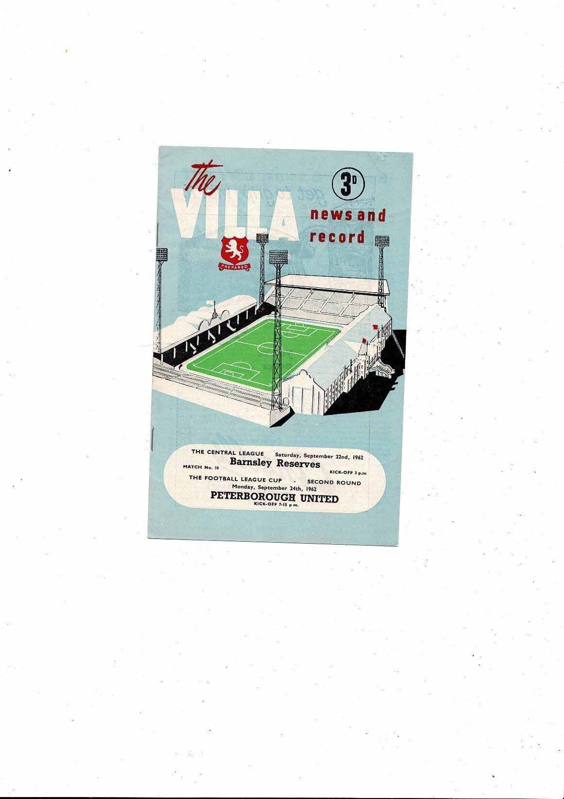 1962/63 Aston Villa v Peterborough League Cup & Barnsley Res Double Programme