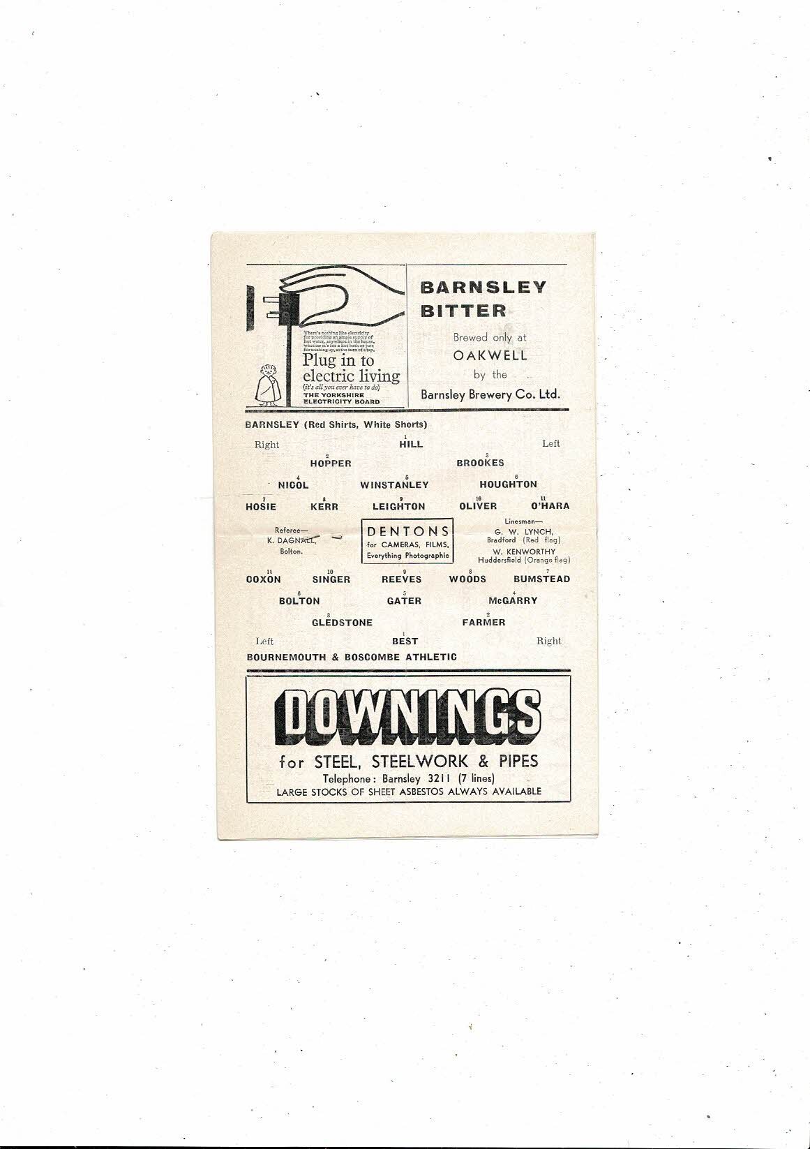 1962/63 Barnsley v Bournemouth Football Programme Dec.