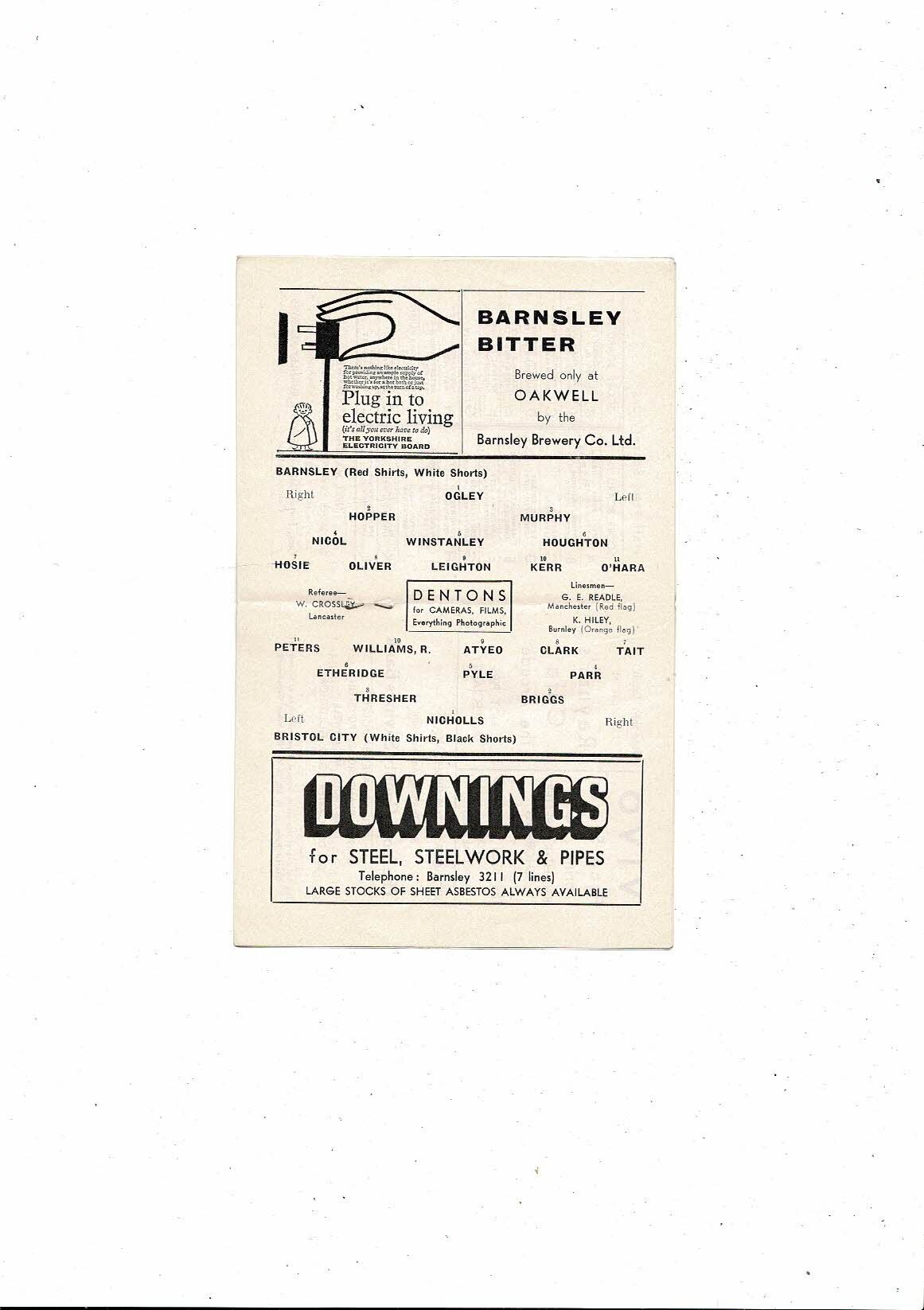1962/63 Barnsley v Bristol City Football Programme