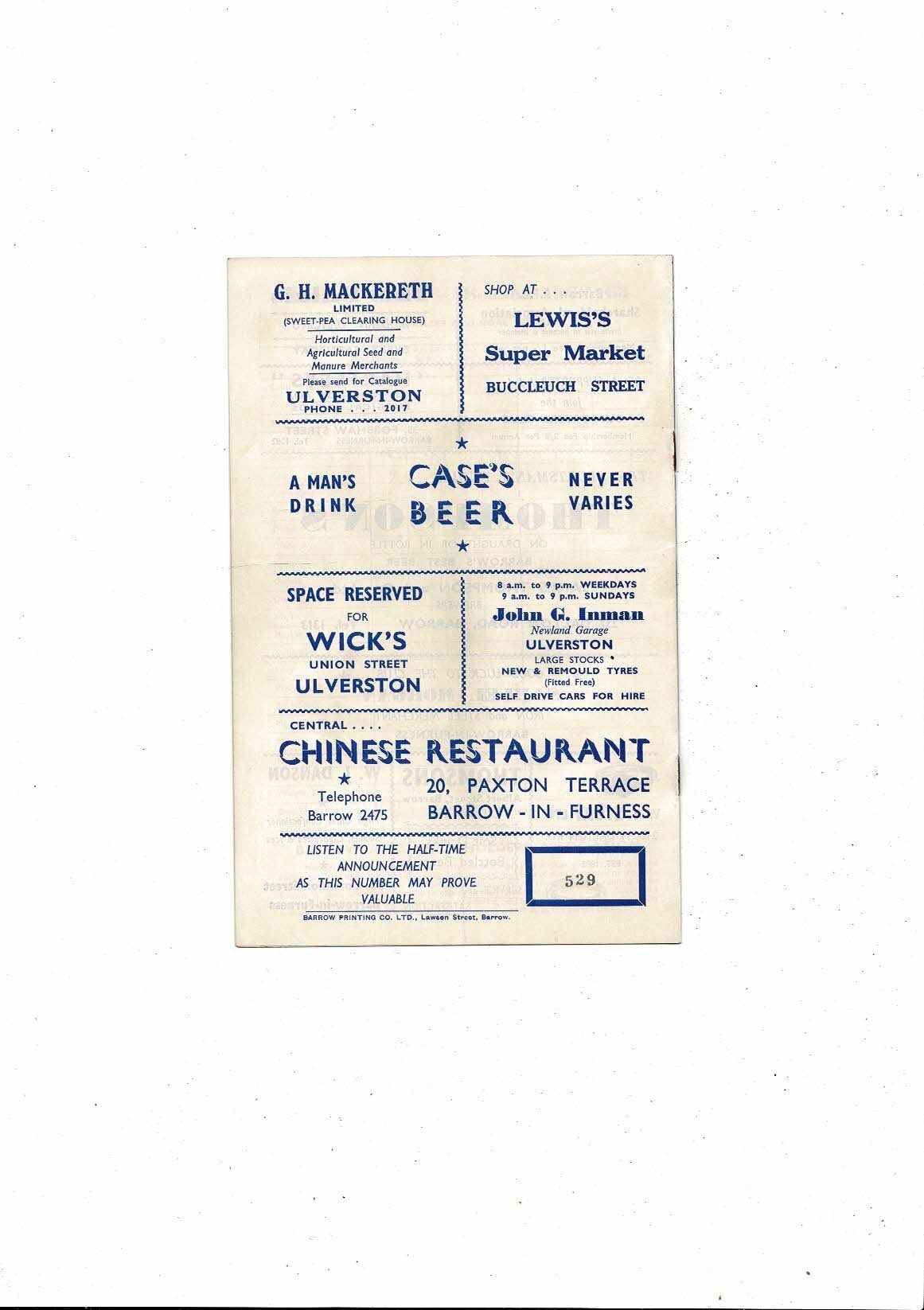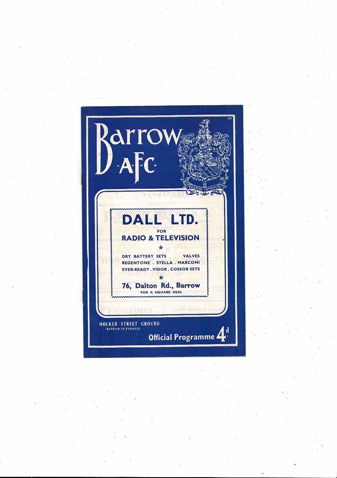 1962/63 Barrow v Tranmere Rovers Football Programme